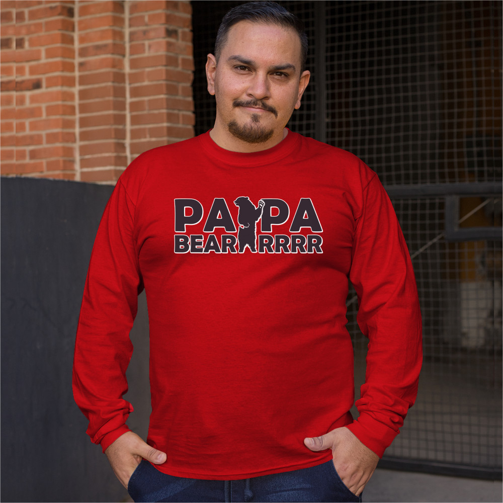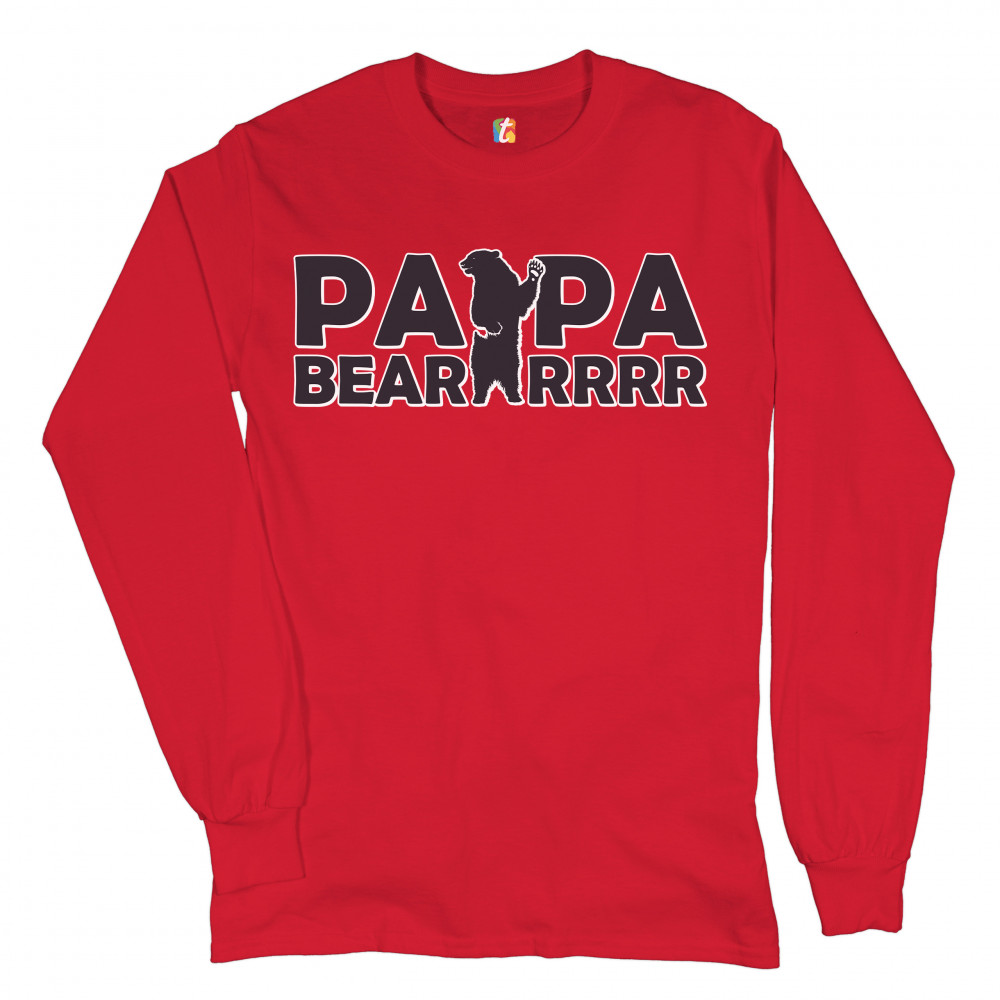 PAPA BEAR long sleeve t-shirt father's day gift funny protective dad daddy red