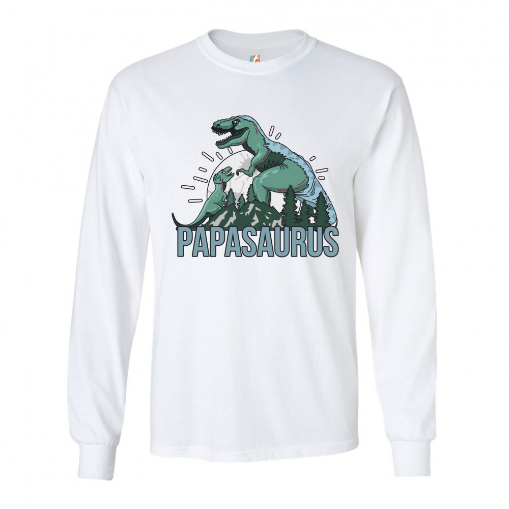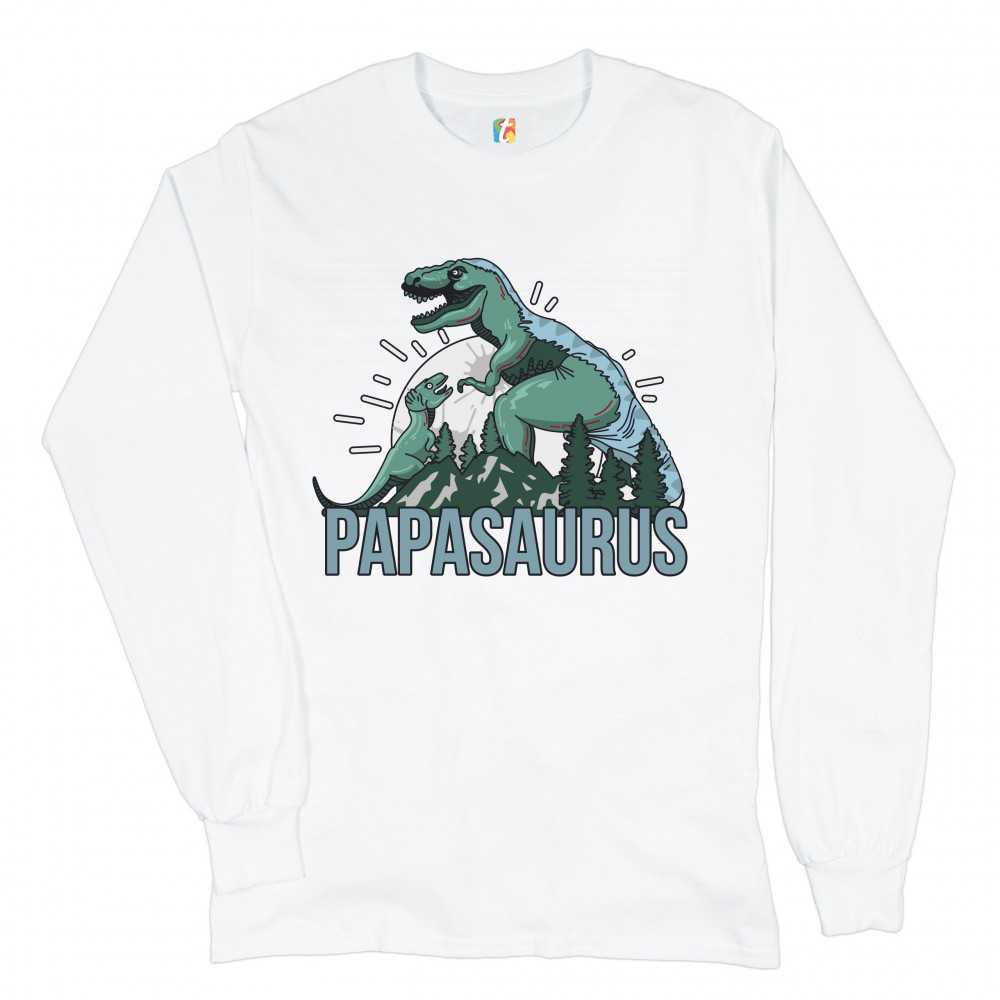 PAPASAURUS long sleeve t-shirt father's day t-rex dinosaur grandpa funny daddy white