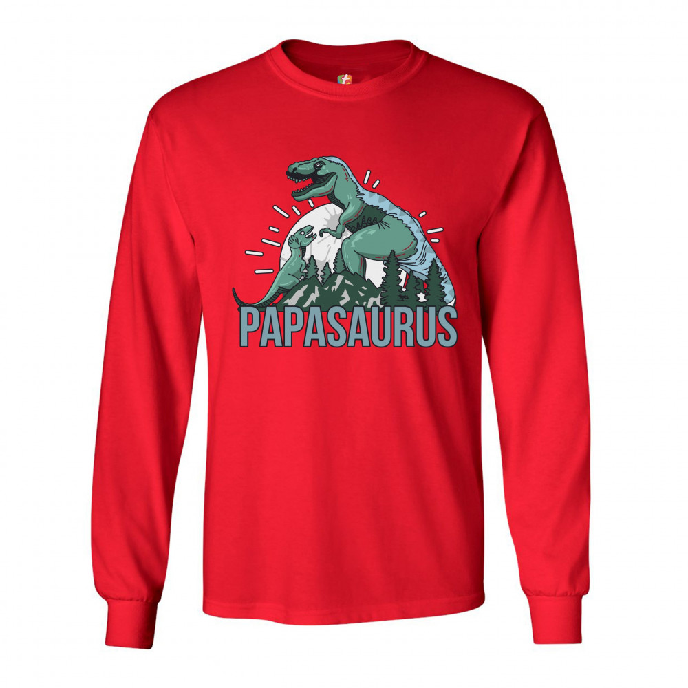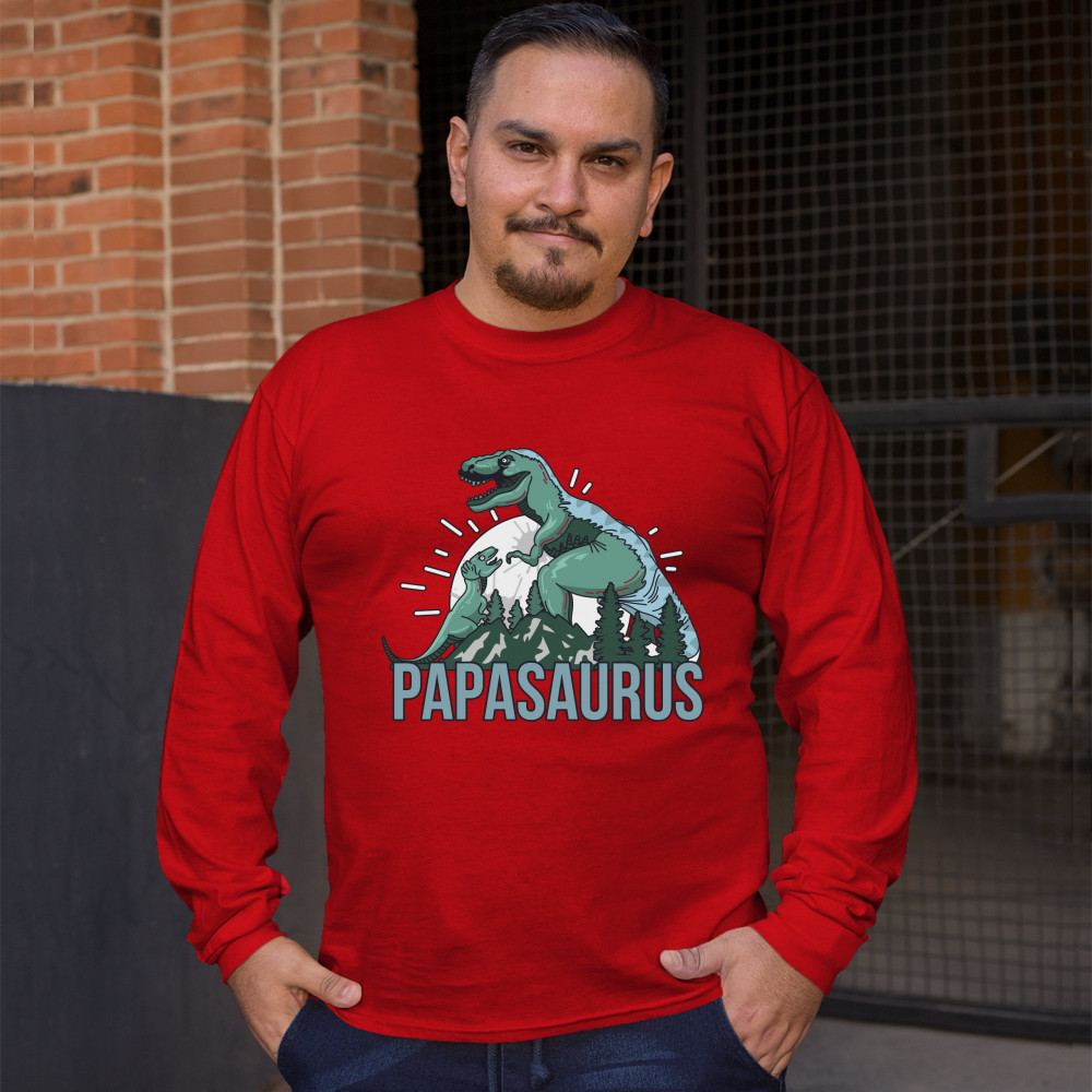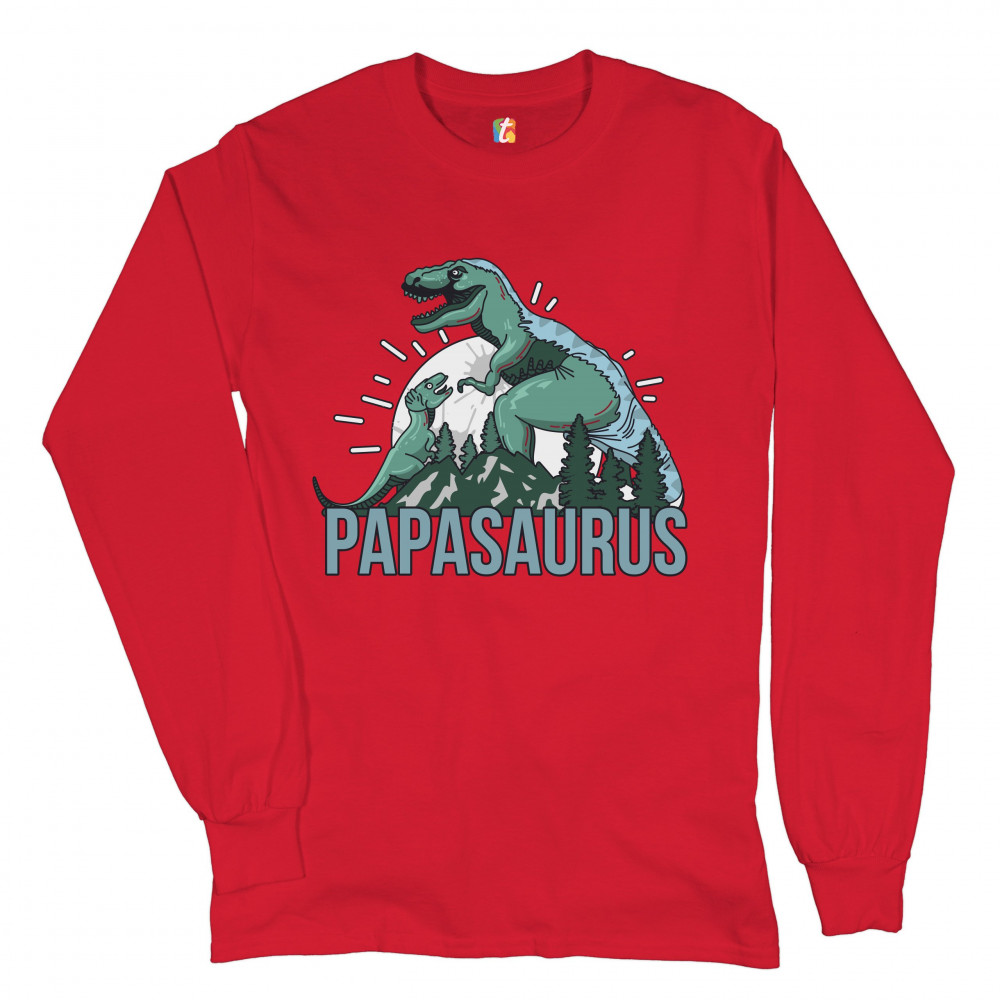 PAPASAURUS long sleeve t-shirt father's day t-rex dinosaur grandpa funny daddy red