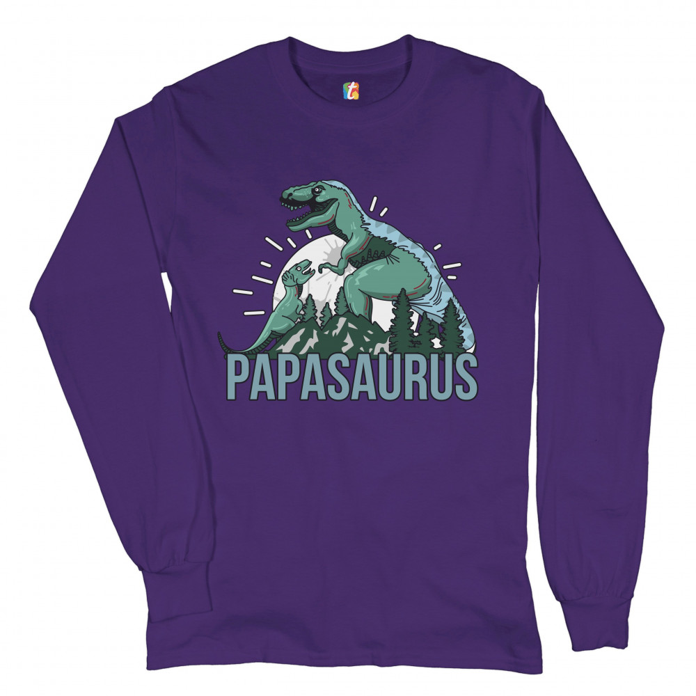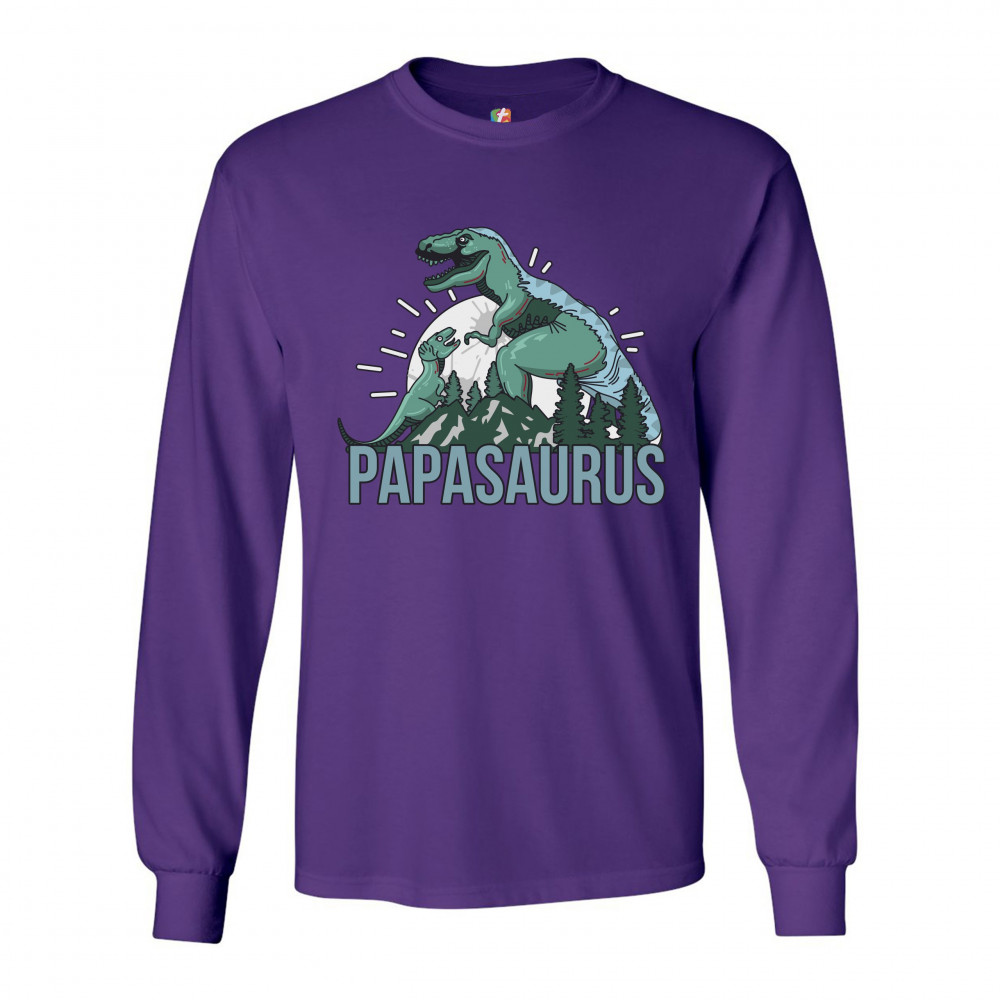 PAPASAURUS long sleeve t-shirt father's day t-rex dinosaur grandpa funny daddy purple
