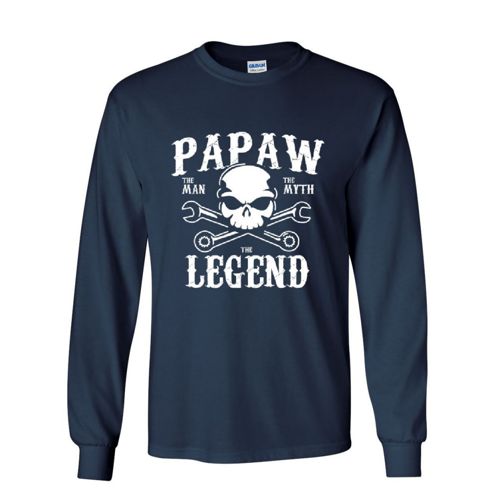 PAPAW the man the myth the legend long sleeve t-shirt grandpa father's day tee navy blue