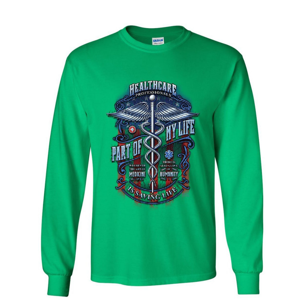 PART OF MY LIFE IS SAVING LIFE long sleeve t-shirt nurse doctor emt medic tee green