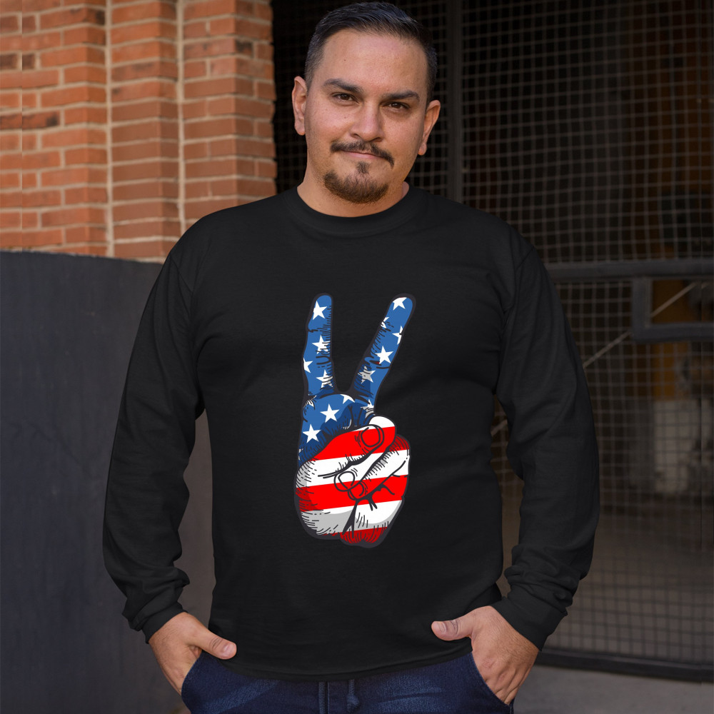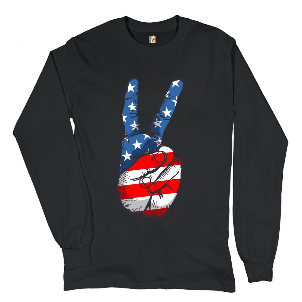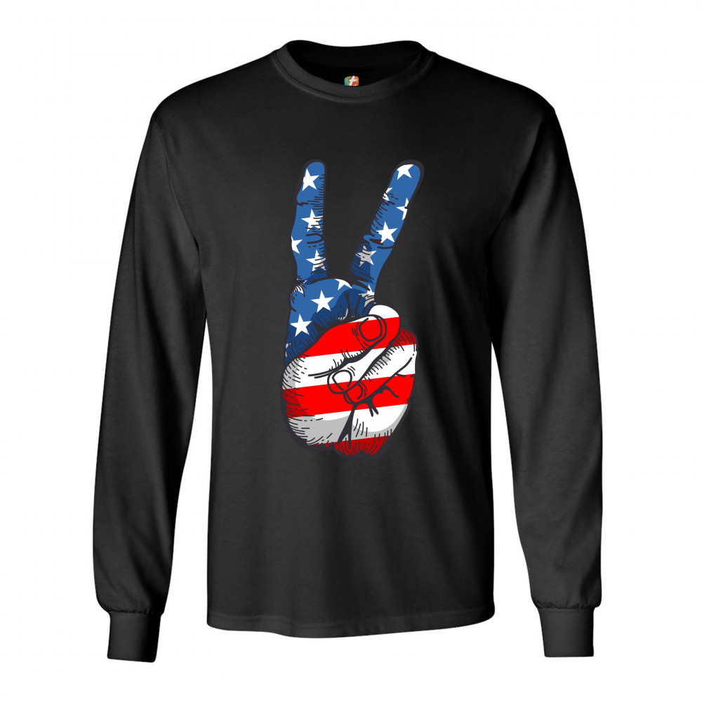 PATRIOTIC VICTORY SIGN long sleeve t-shirt american flag usa independence day black