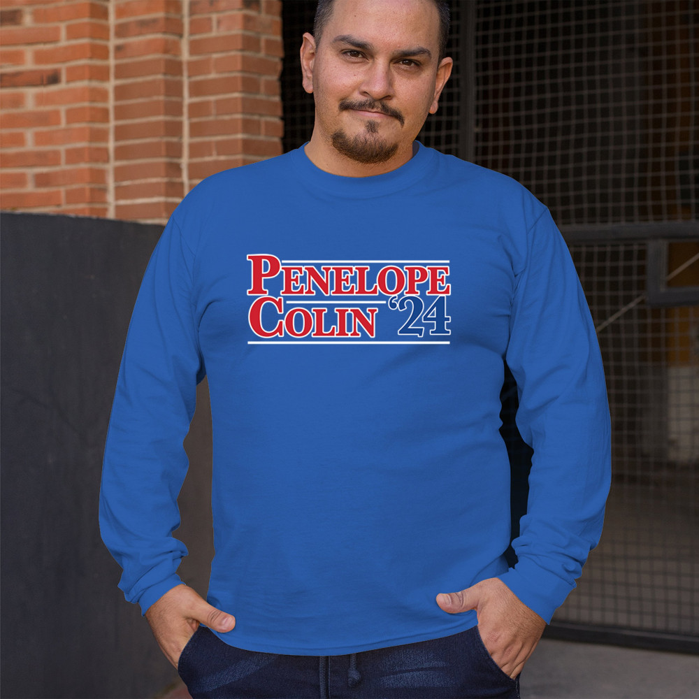 Step into the 2024 election season with a touch of humor and flair with our Penelope and Colin shirt. Designed for fans of political satire and pop culture, this shirt combines quality with a clever twist. Made from soft, high-quality fabric, it ensures comfort and longevity. Perfect for rallies, parties, or just a day out, this shirt will surely make you the center of attention. Embrace the fun side of politics and make a statement with this unique design.