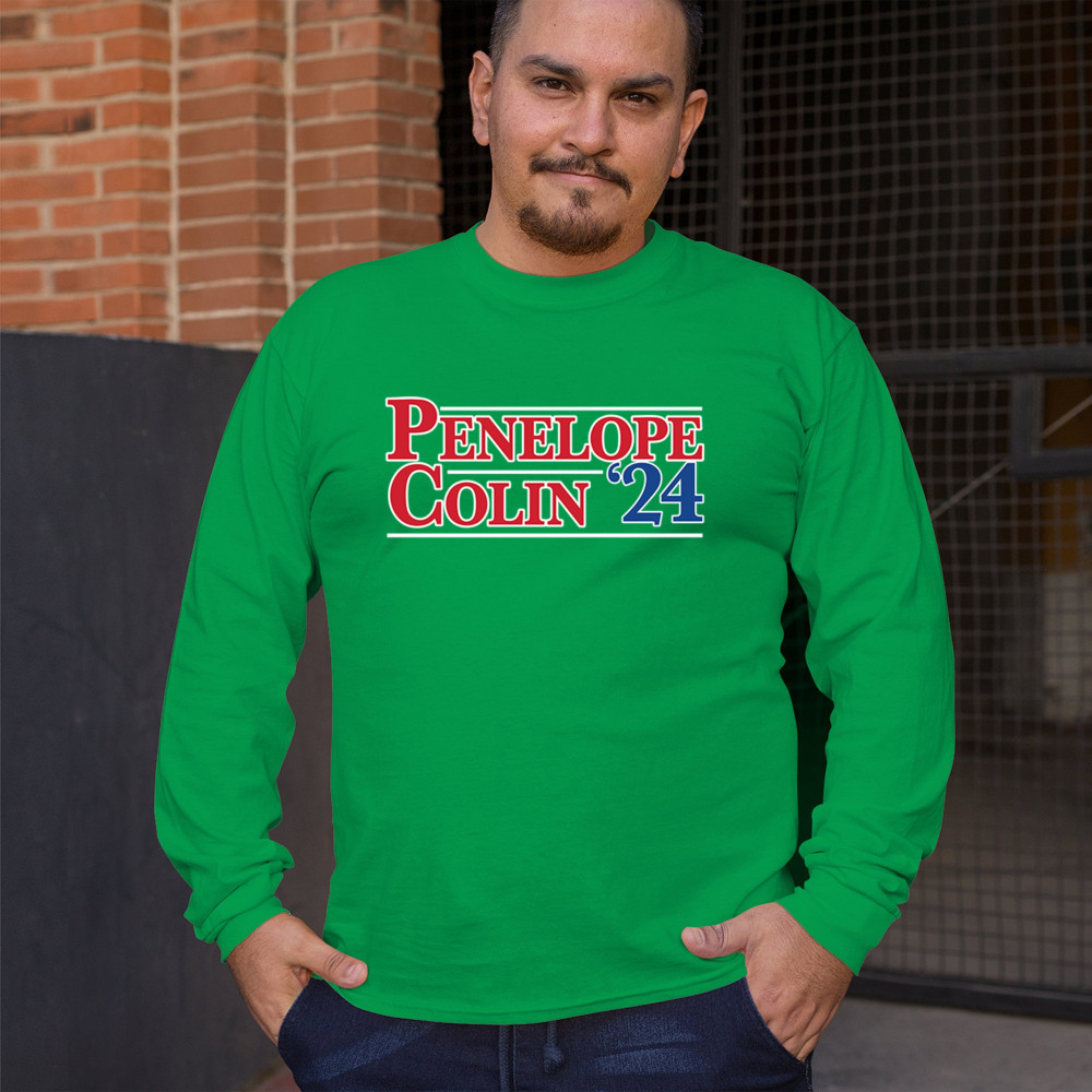 Step into the 2024 election season with a touch of humor and flair with our Penelope and Colin shirt. Designed for fans of political satire and pop culture, this shirt combines quality with a clever twist. Made from soft, high-quality fabric, it ensures comfort and longevity. Perfect for rallies, parties, or just a day out, this shirt will surely make you the center of attention. Embrace the fun side of politics and make a statement with this unique design.