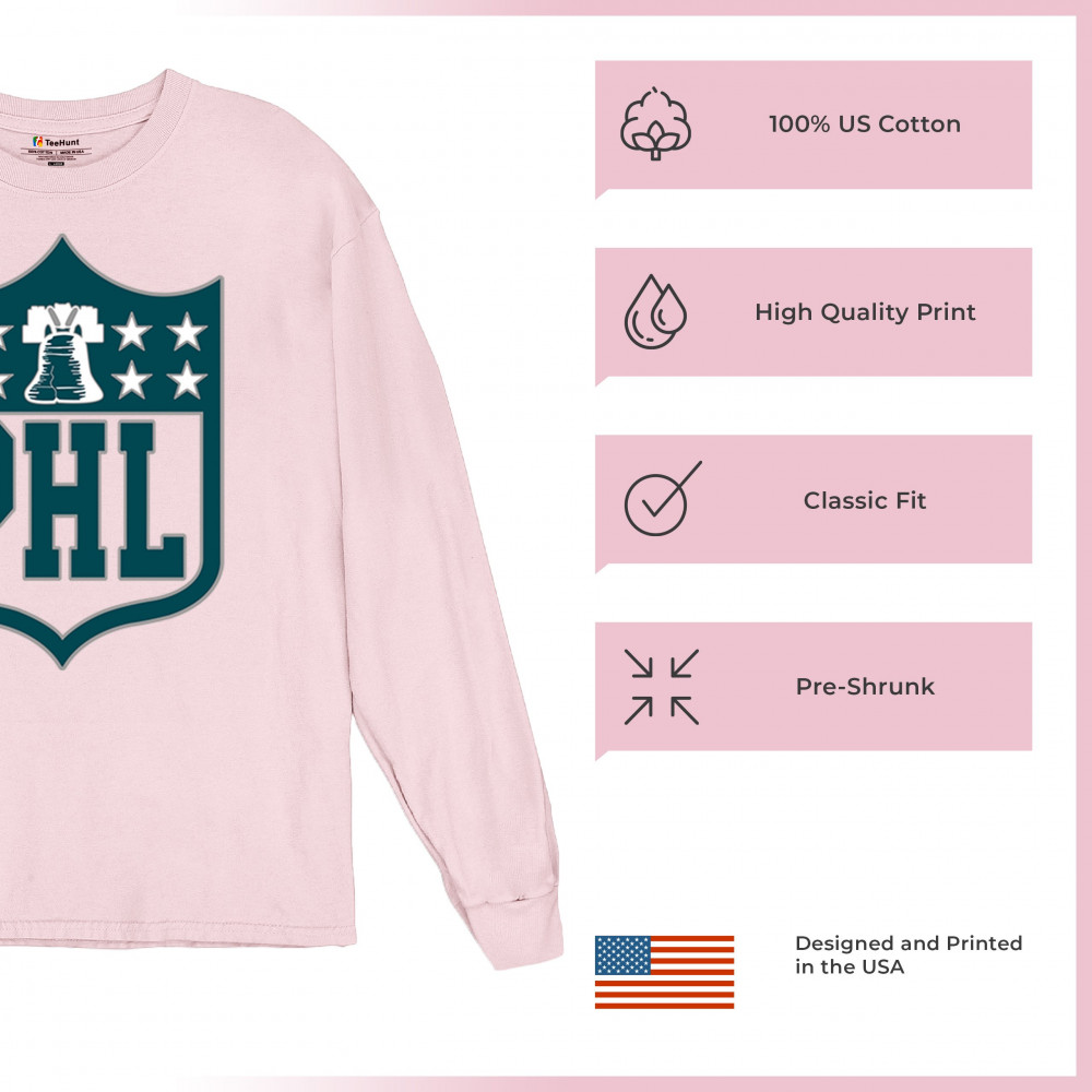 Bold PHL shield with liberty bell, perfect for Sunday football, big game energy, and Philadelphia pride for true fans.