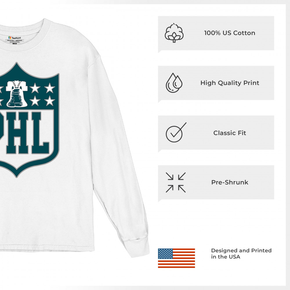 Bold PHL shield with liberty bell, perfect for Sunday football, big game energy, and Philadelphia pride for true fans.