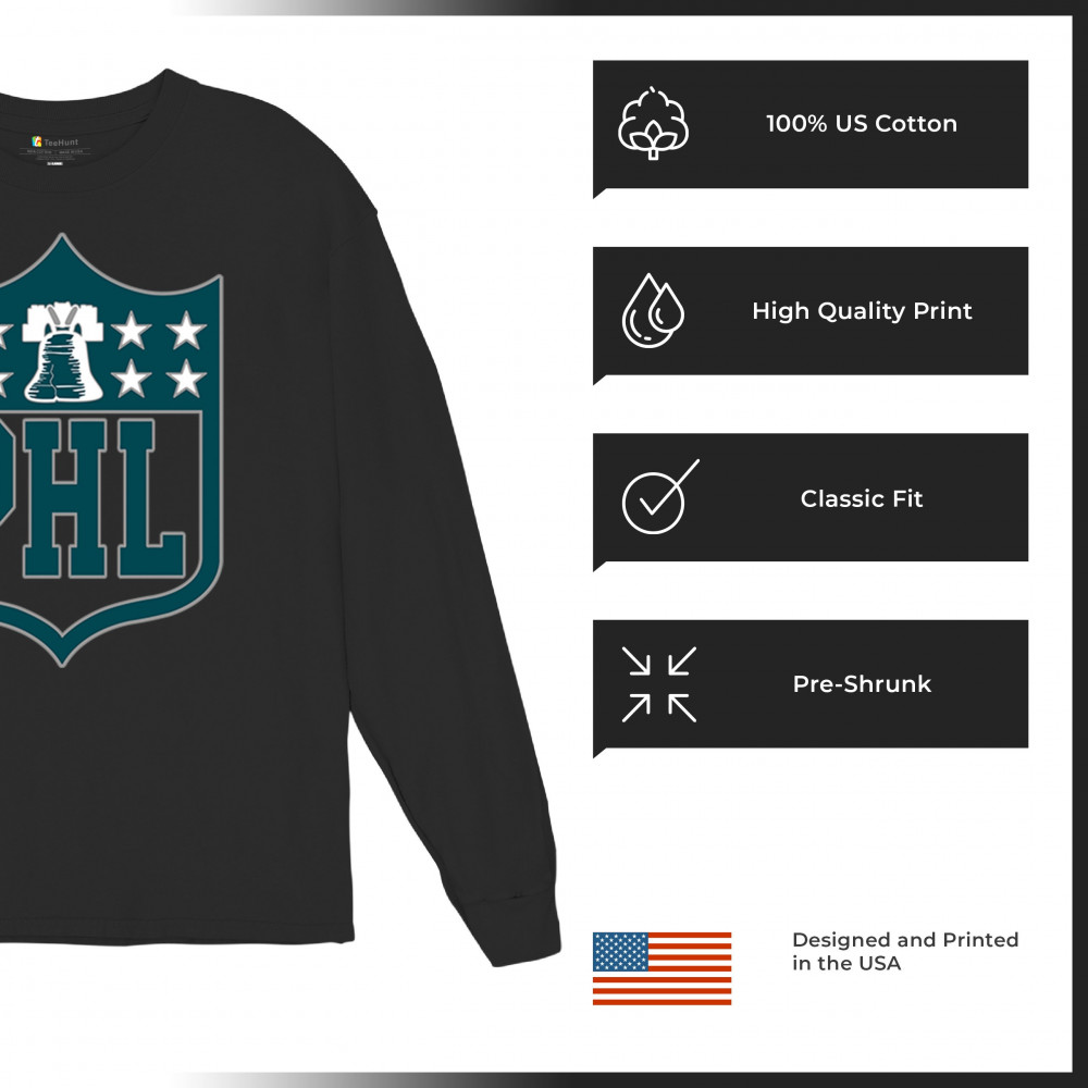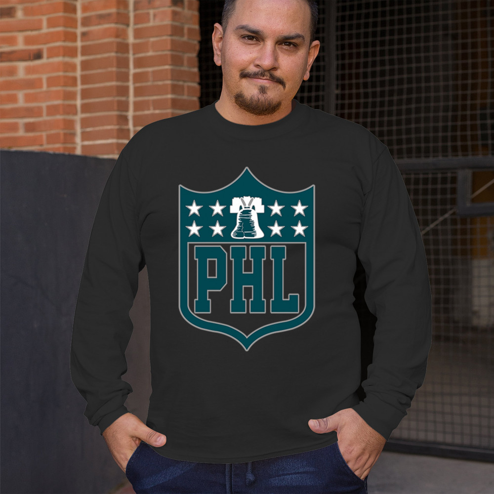 Bold PHL shield with liberty bell, perfect for Sunday football, big game energy, and Philadelphia pride for true fans.