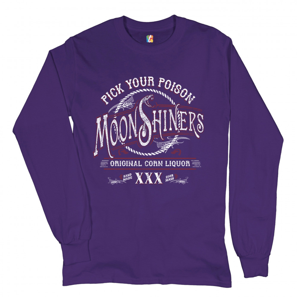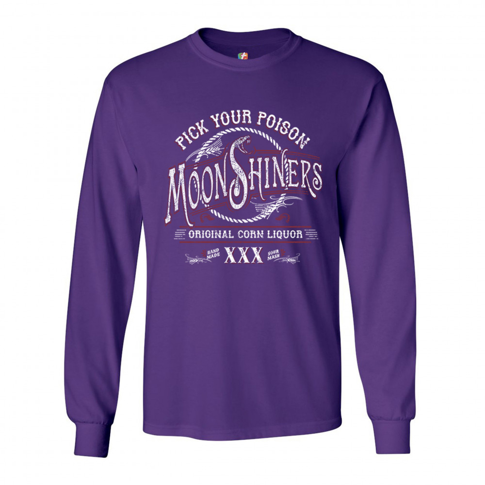 PICK YOUR POISON MOONSHINERS long sleeve t-shirt original corn liquor xxx purple