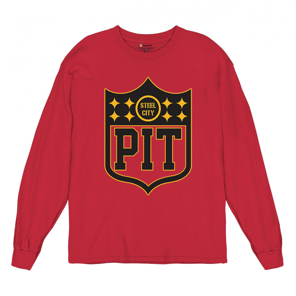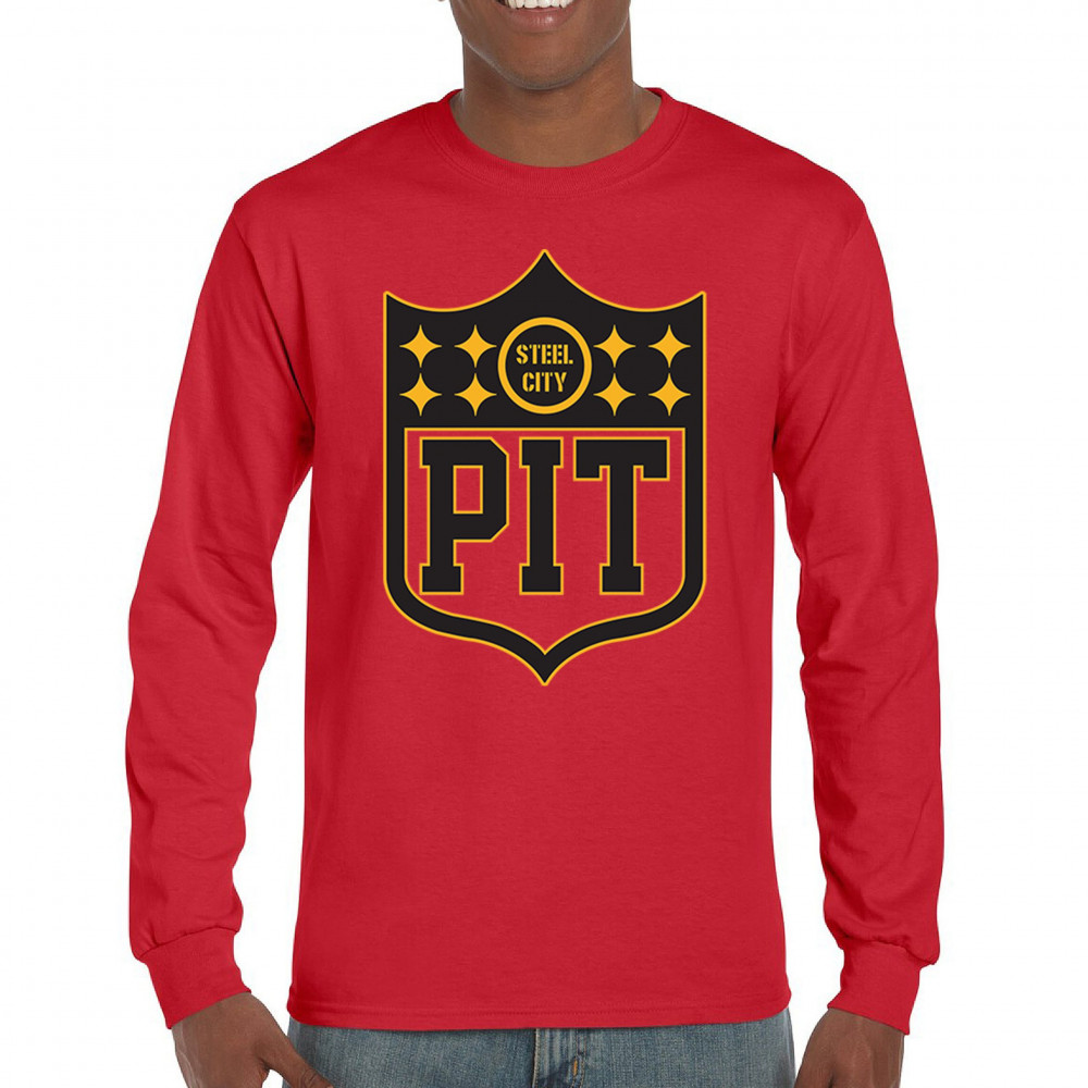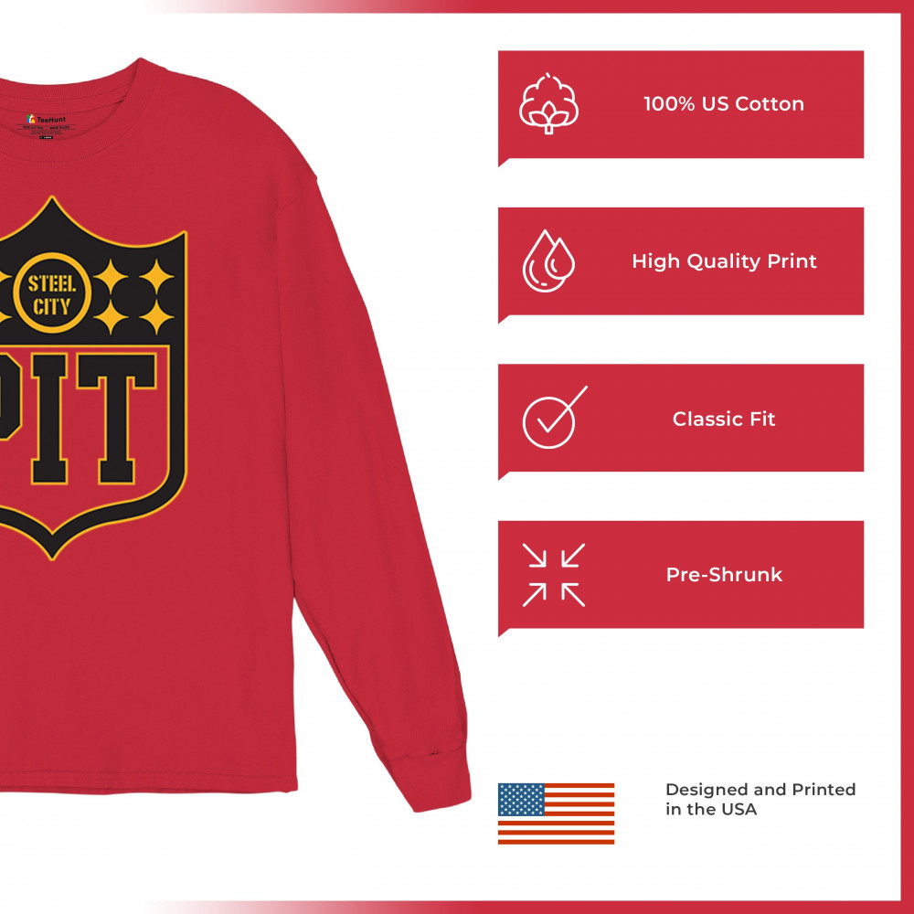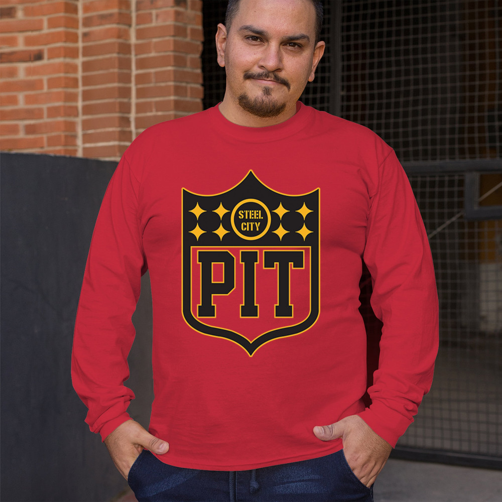 Steel City PIT shield football gear celebrating Pittsburgh football nation, gridiron tradition, playoff vibes, and sports heritage.