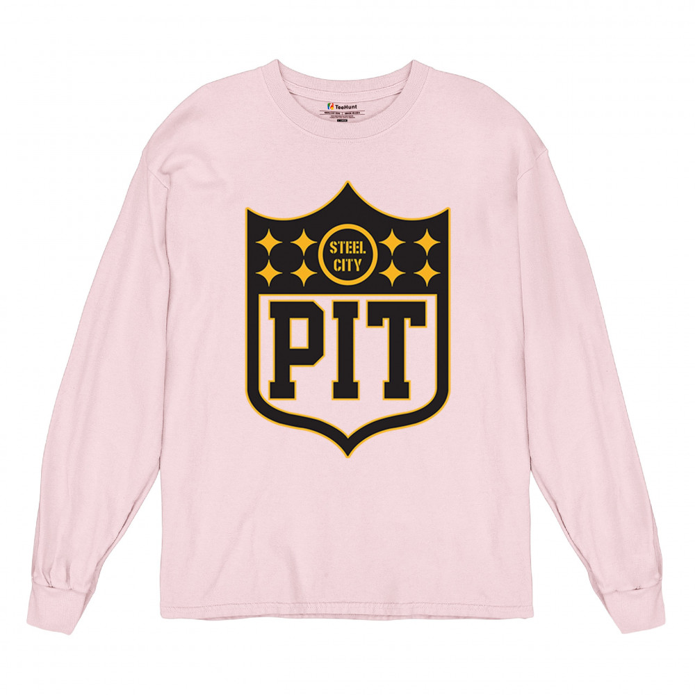 Steel City PIT shield football gear celebrating Pittsburgh football nation, gridiron tradition, playoff vibes, and sports heritage.