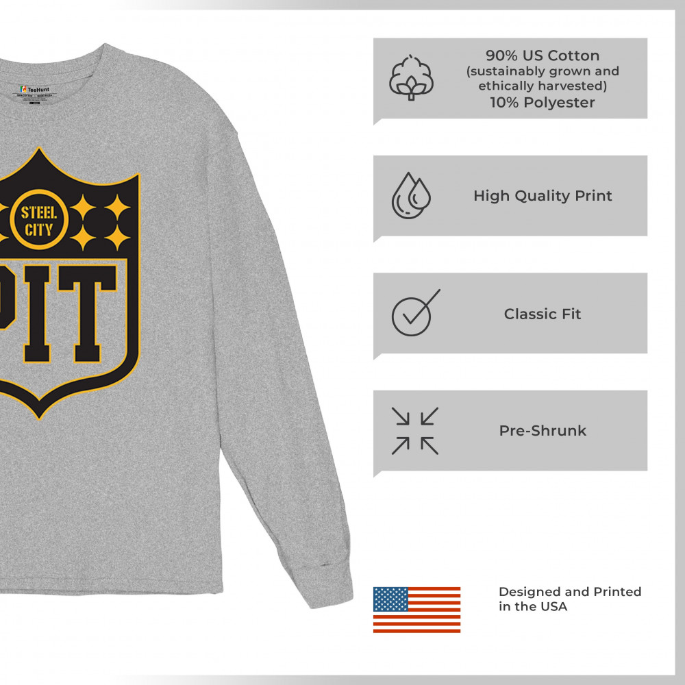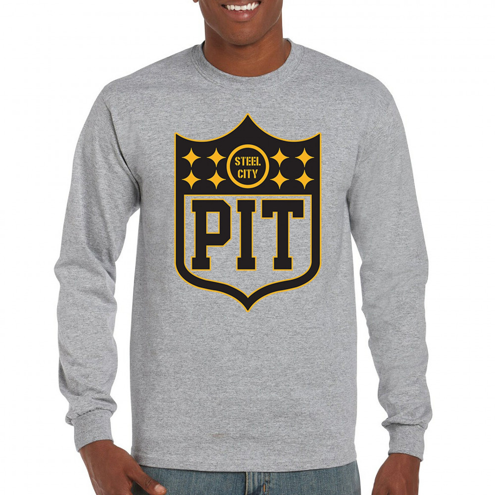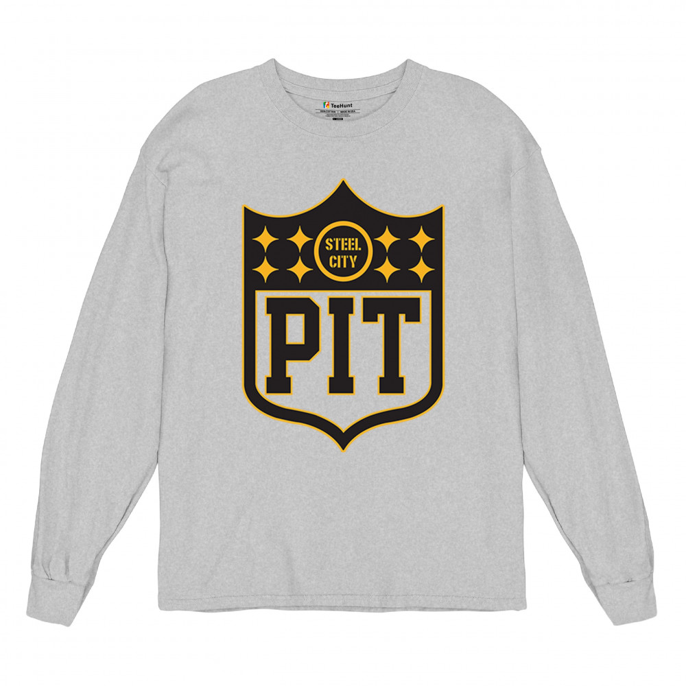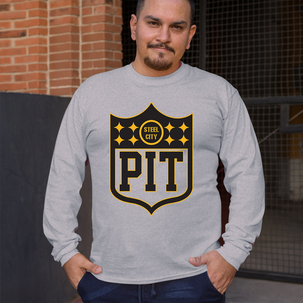 Steel City PIT shield football gear celebrating Pittsburgh football nation, gridiron tradition, playoff vibes, and sports heritage.