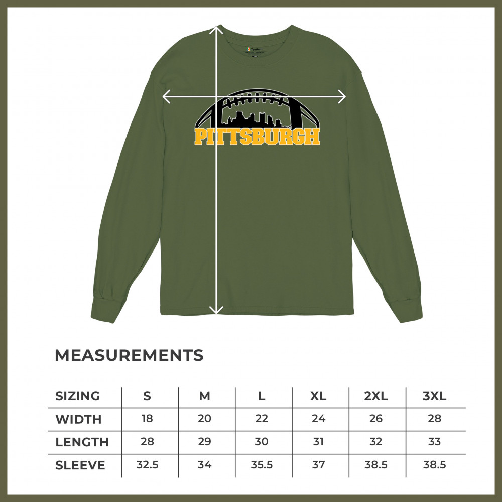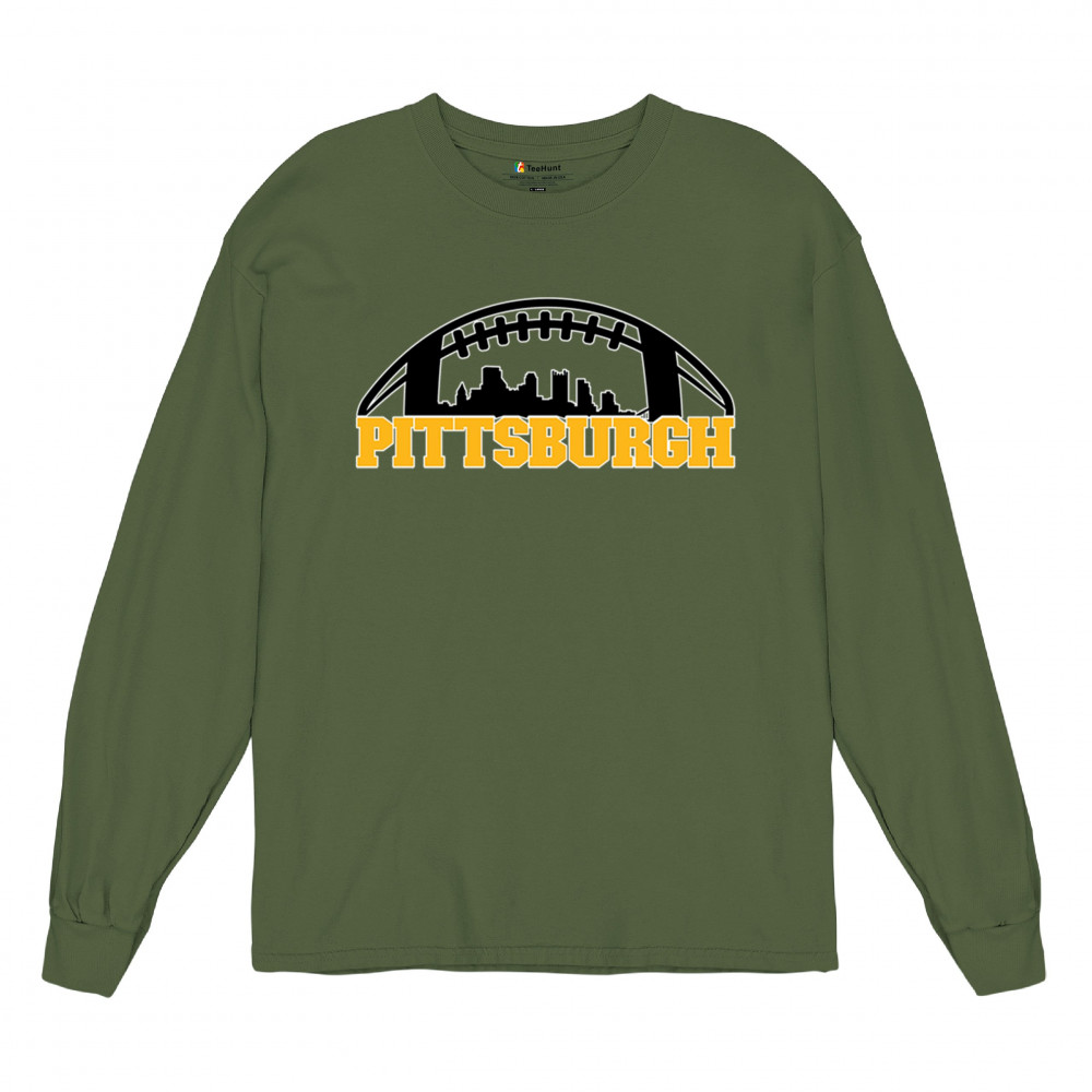 Embrace your Steel City pride with this bold Pittsburgh-themed design, showcasing the city skyline in a unique football graphic. Perfect for game day celebrations, tailgating parties, or everyday wear, this design captures the energy and passion of Pittsburgh's legendary sports culture. Whether you're cheering on your favorite team or representing your city, this design is a must-have for Pittsburgh fans.