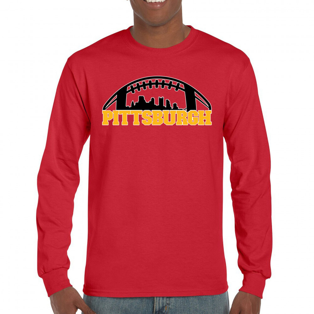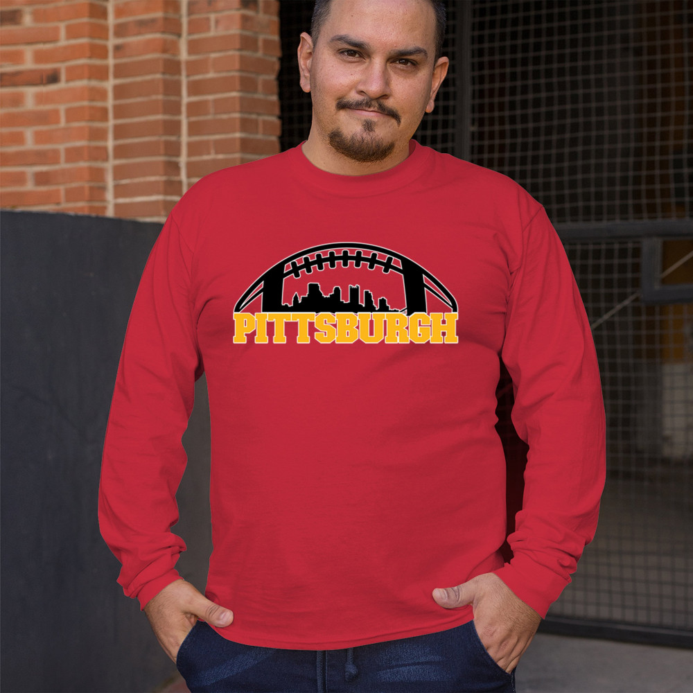 Embrace your Steel City pride with this bold Pittsburgh-themed design, showcasing the city skyline in a unique football graphic. Perfect for game day celebrations, tailgating parties, or everyday wear, this design captures the energy and passion of Pittsburgh's legendary sports culture. Whether you're cheering on your favorite team or representing your city, this design is a must-have for Pittsburgh fans.