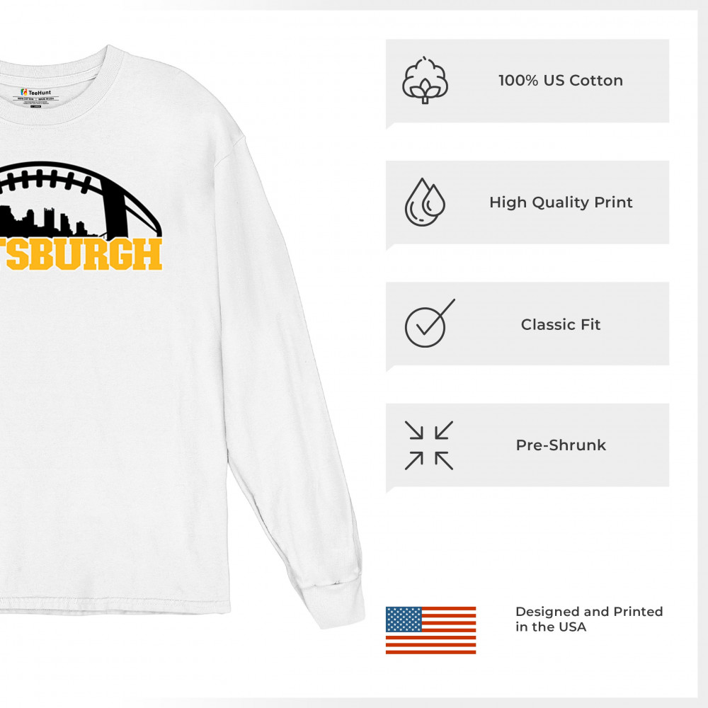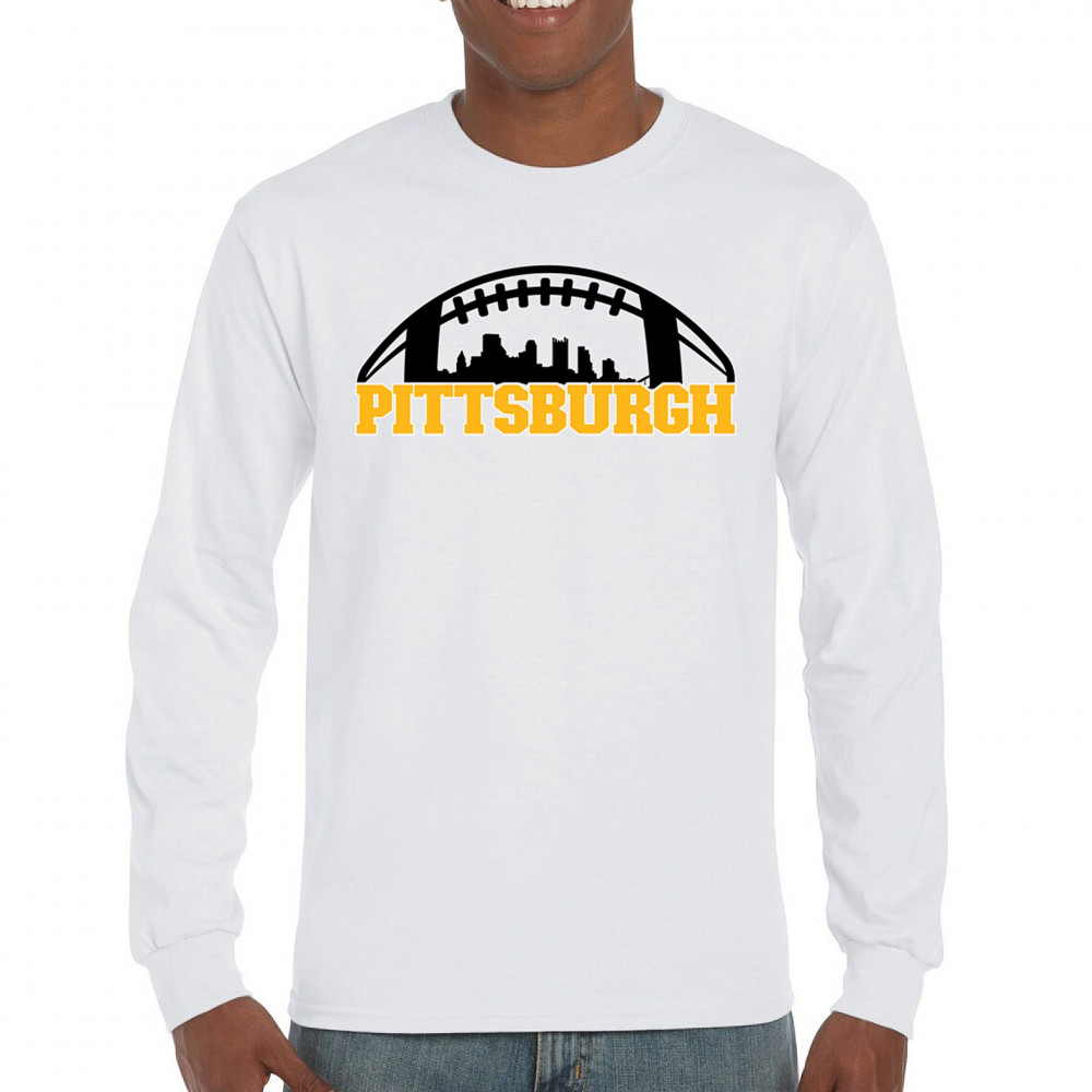 Embrace your Steel City pride with this bold Pittsburgh-themed design, showcasing the city skyline in a unique football graphic. Perfect for game day celebrations, tailgating parties, or everyday wear, this design captures the energy and passion of Pittsburgh's legendary sports culture. Whether you're cheering on your favorite team or representing your city, this design is a must-have for Pittsburgh fans.
