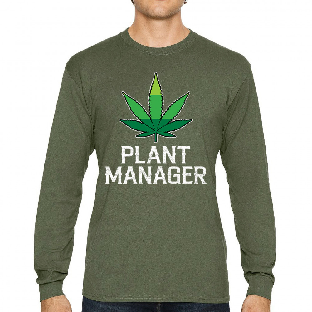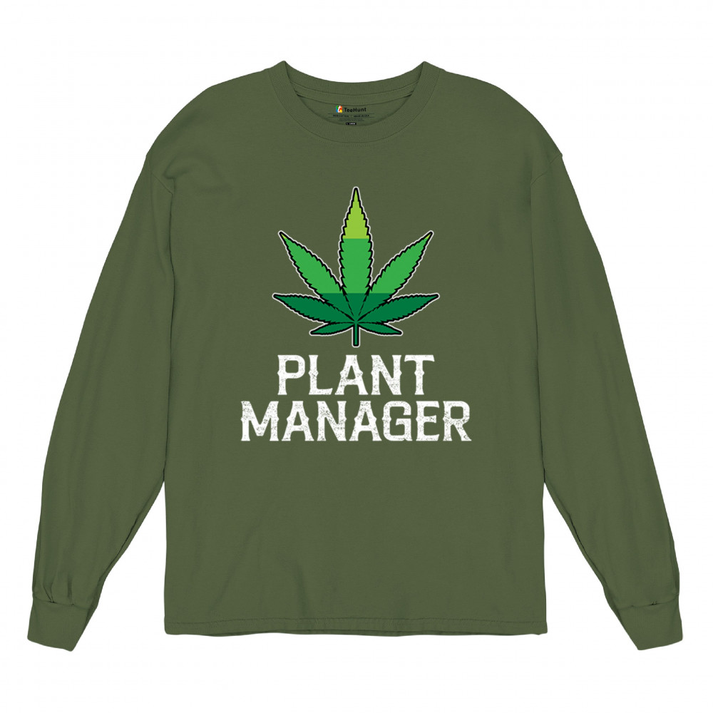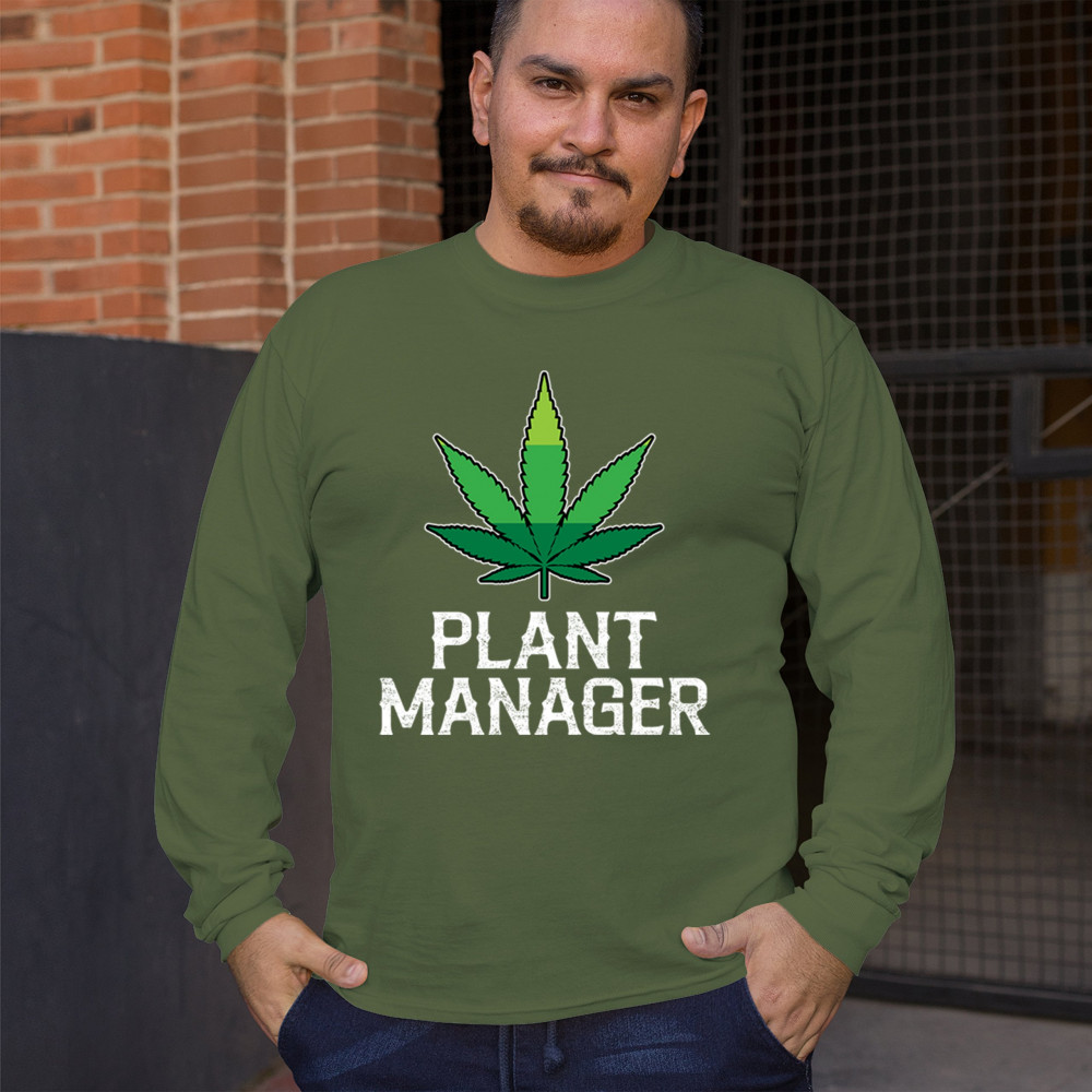 Humorous "Plant Manager" design featuring a bold green cannabis leaf. Perfect for fans of Mary Jane, stoned humor, and relaxed style. Ideal for chill vibes.
