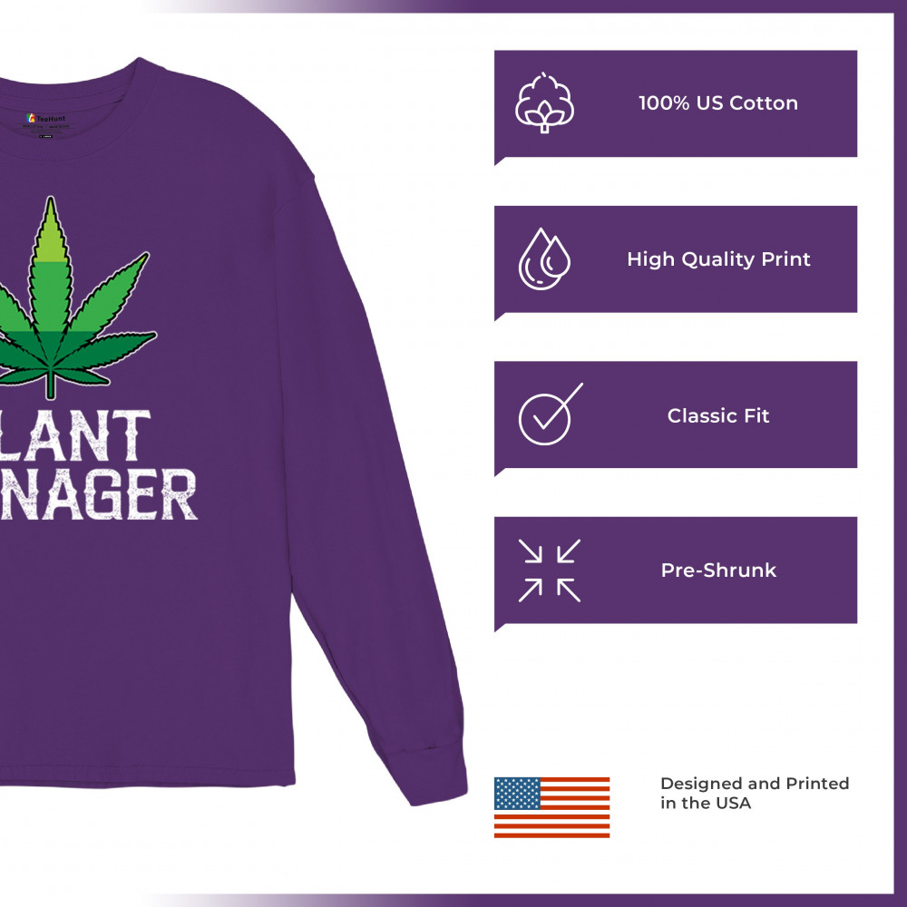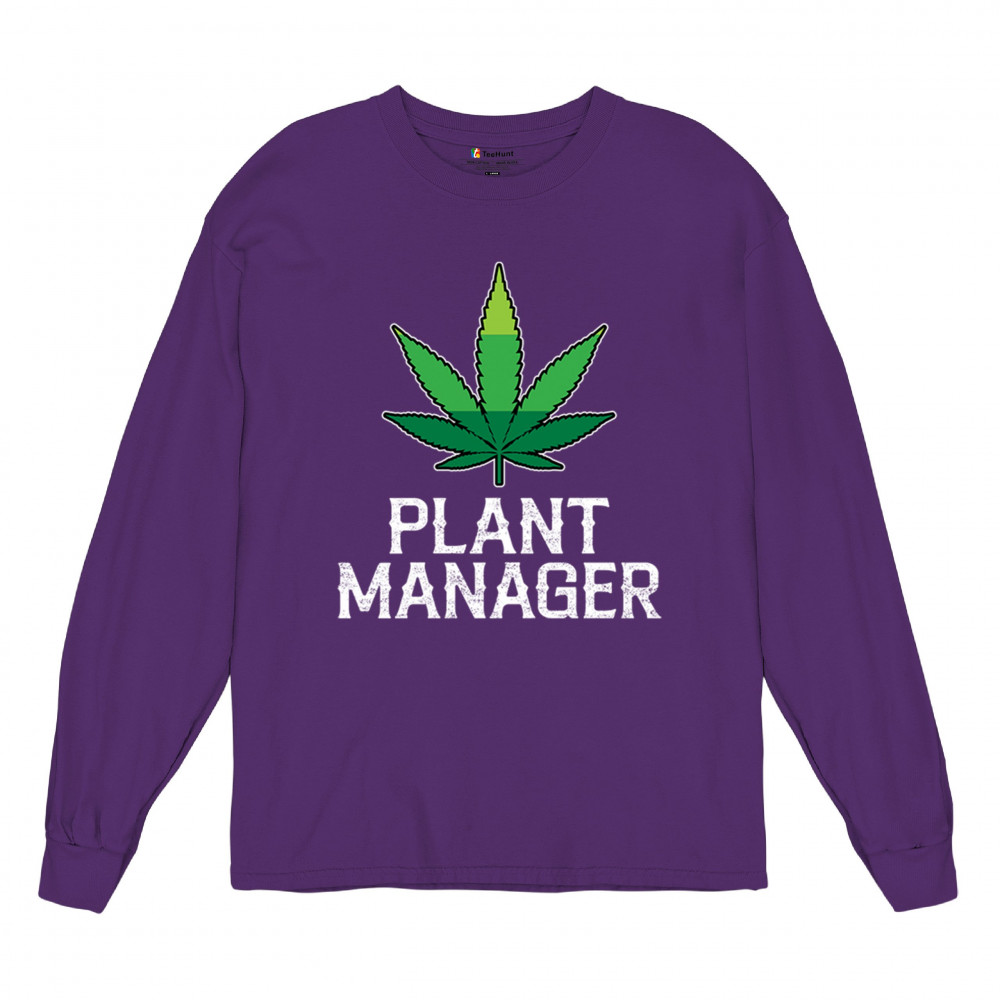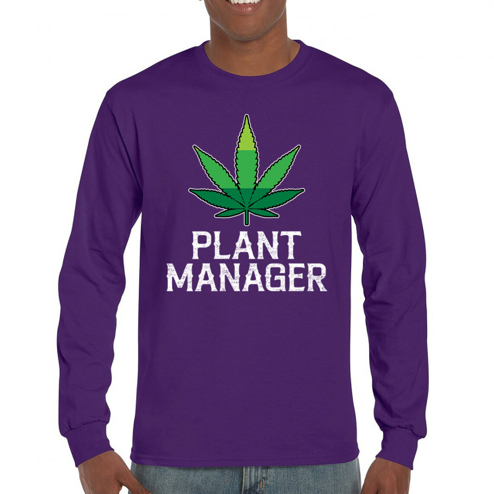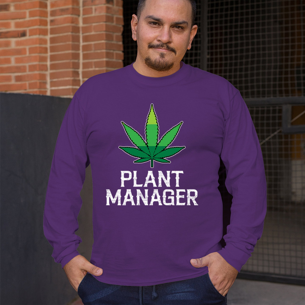 Humorous "Plant Manager" design featuring a bold green cannabis leaf. Perfect for fans of Mary Jane, stoned humor, and relaxed style. Ideal for chill vibes.