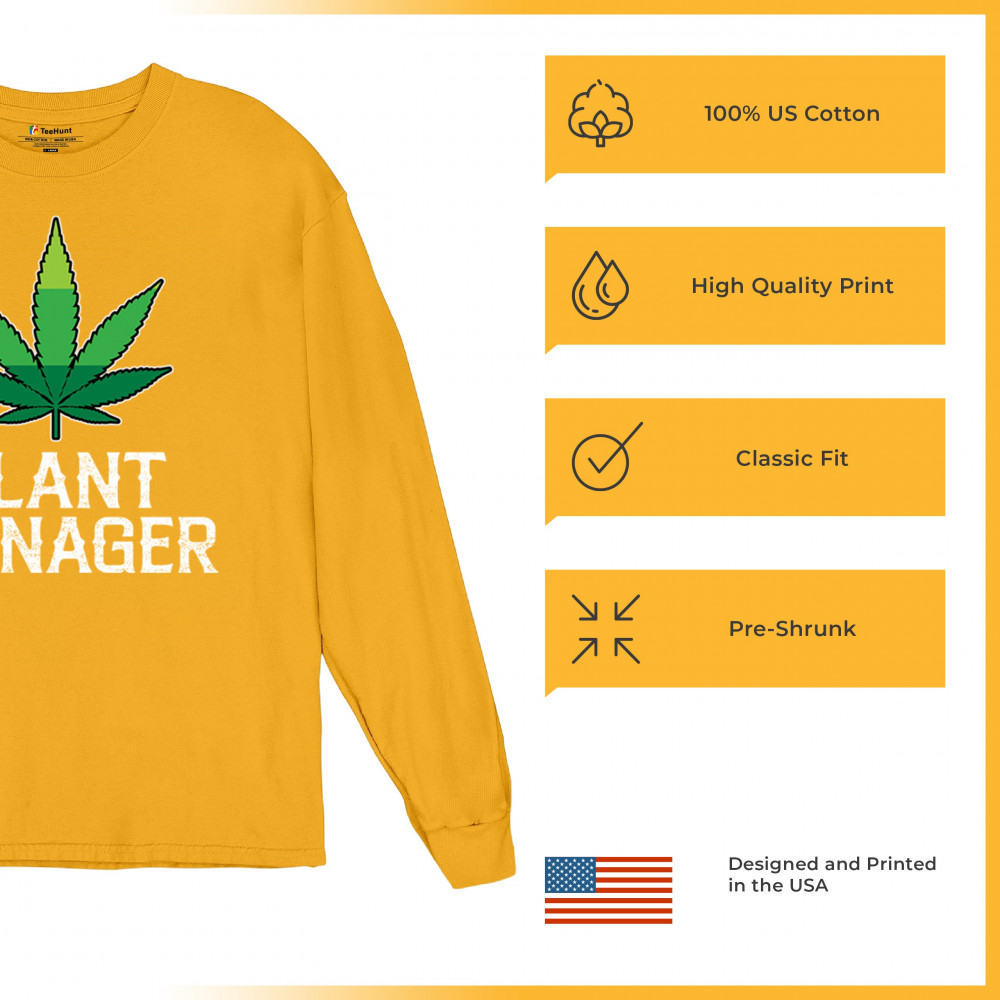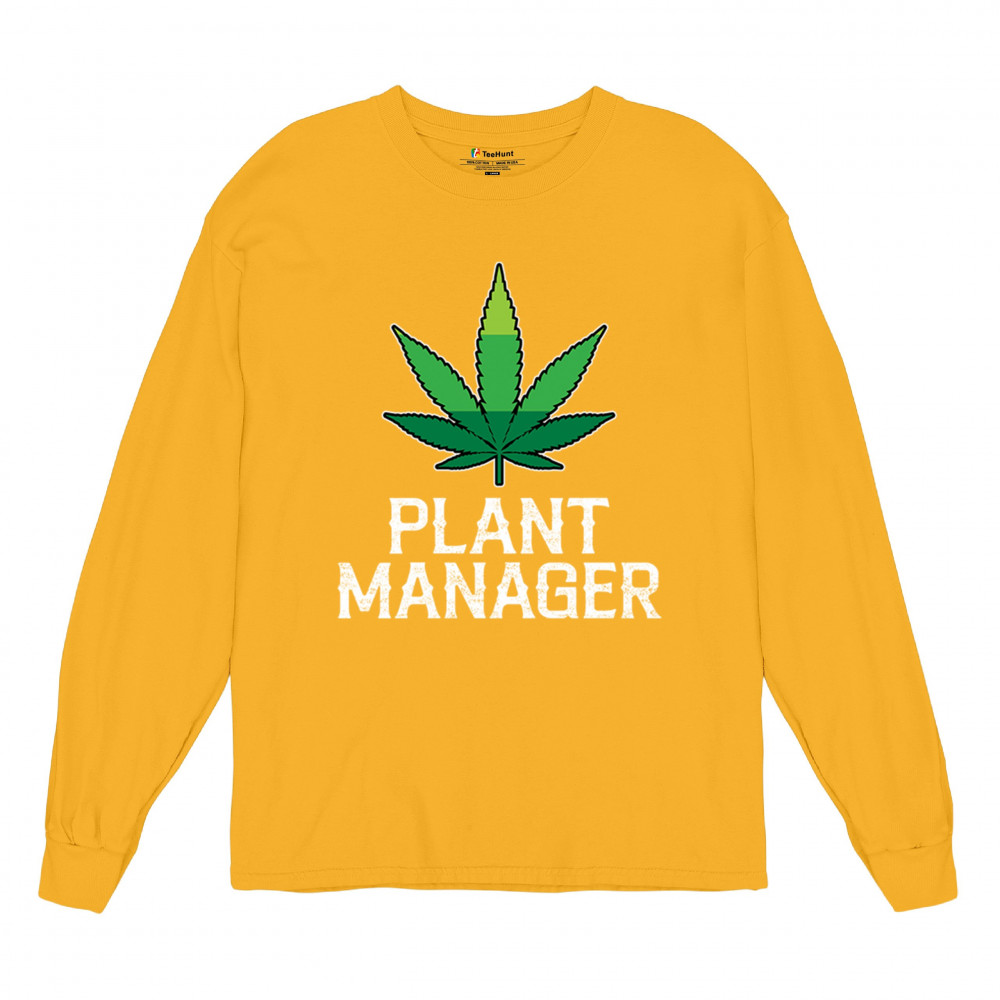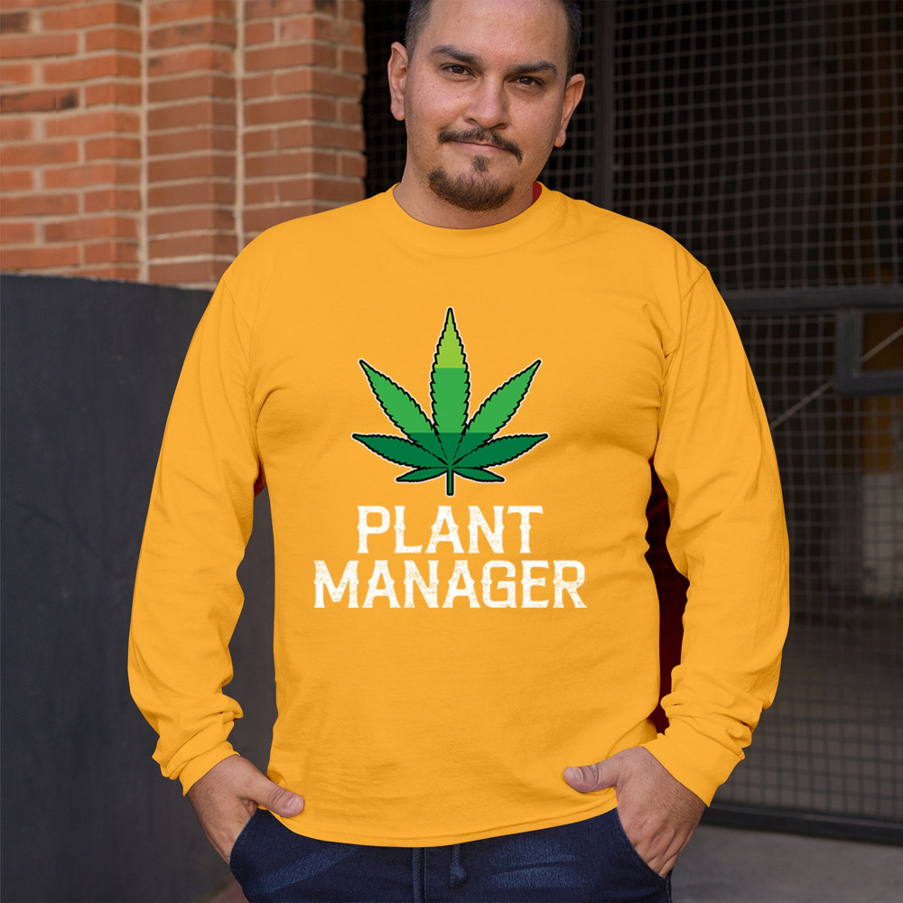 Humorous "Plant Manager" design featuring a bold green cannabis leaf. Perfect for fans of Mary Jane, stoned humor, and relaxed style. Ideal for chill vibes.