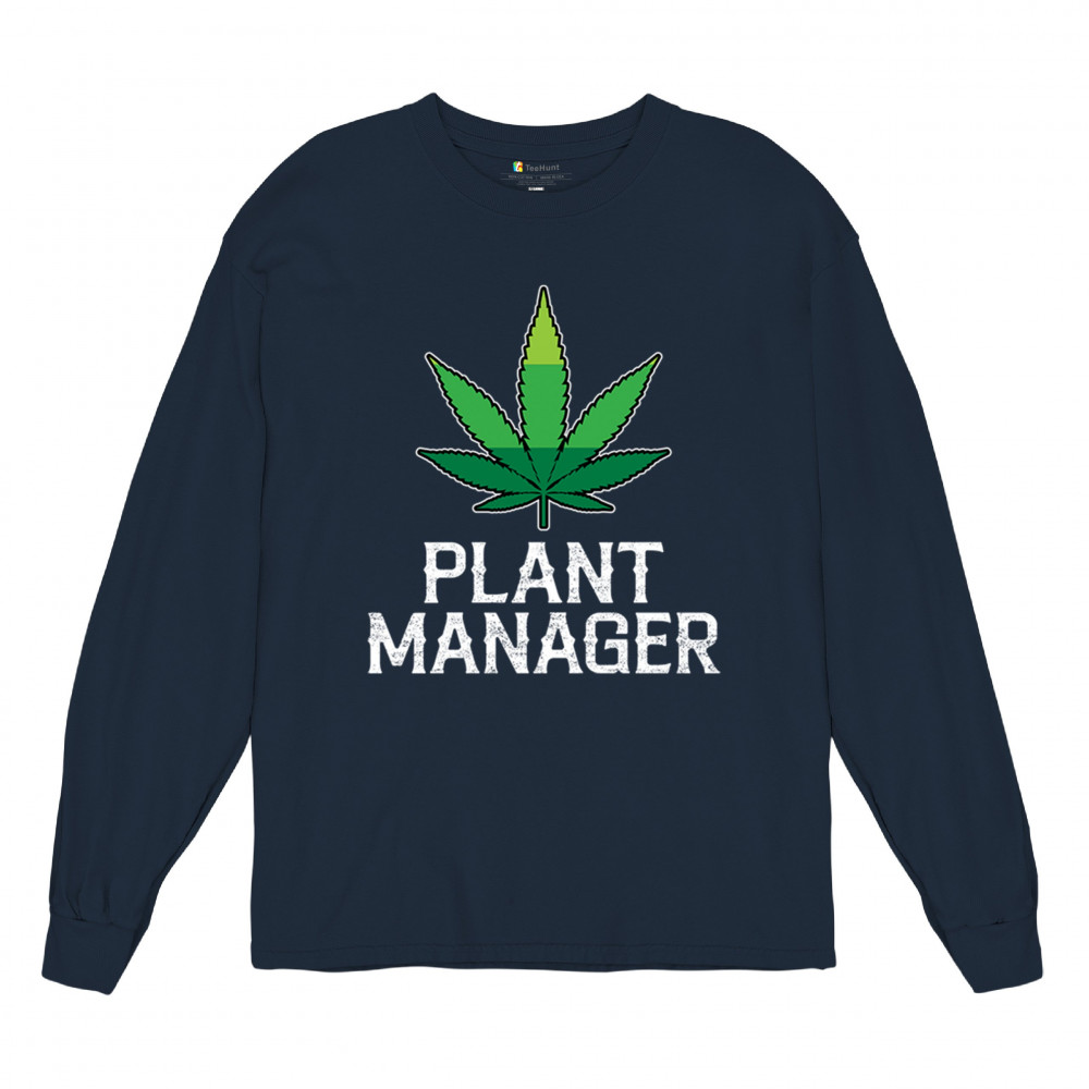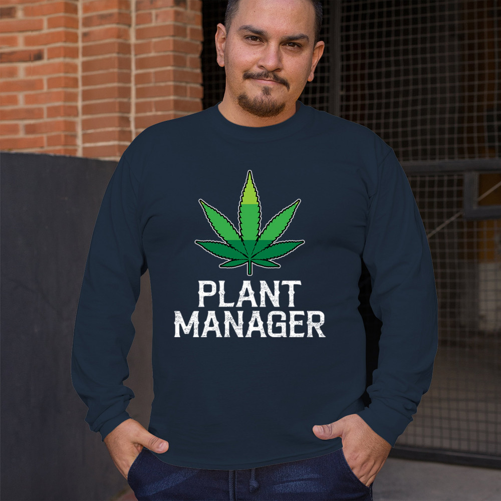 Humorous "Plant Manager" design featuring a bold green cannabis leaf. Perfect for fans of Mary Jane, stoned humor, and relaxed style. Ideal for chill vibes.