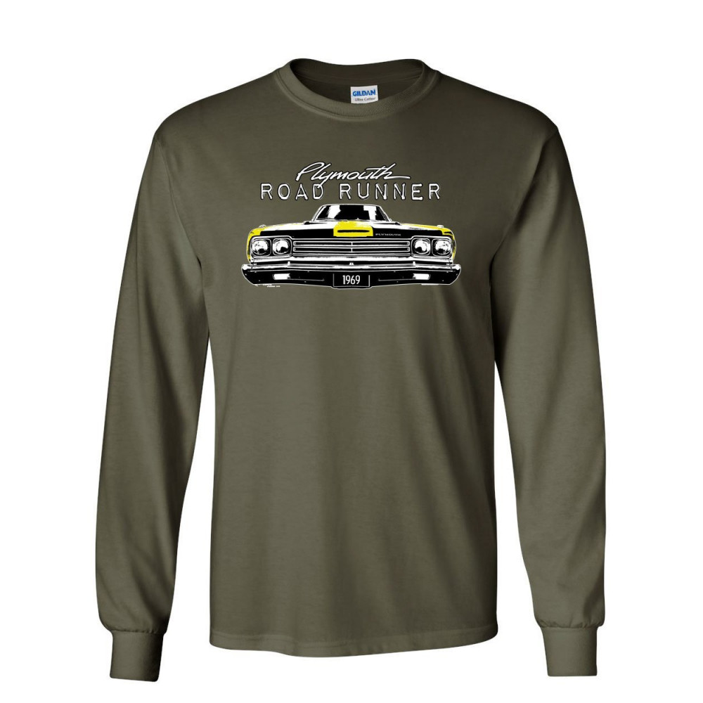 PLYMOUTH ROAD RUNNER 1969 long sleeve t-shirt route 66 american made classic tee military green