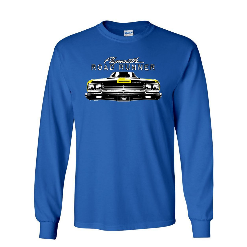 PLYMOUTH ROAD RUNNER 1969 long sleeve t-shirt route 66 american made classic tee royal blue