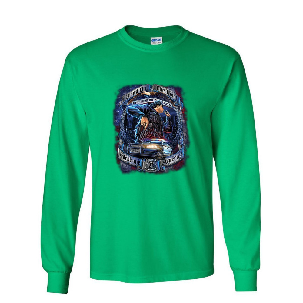 POLICE - BACKBONE OF AMERICA police backbone of america long sleeve t-shirt valor service duty cop patrol tee green
