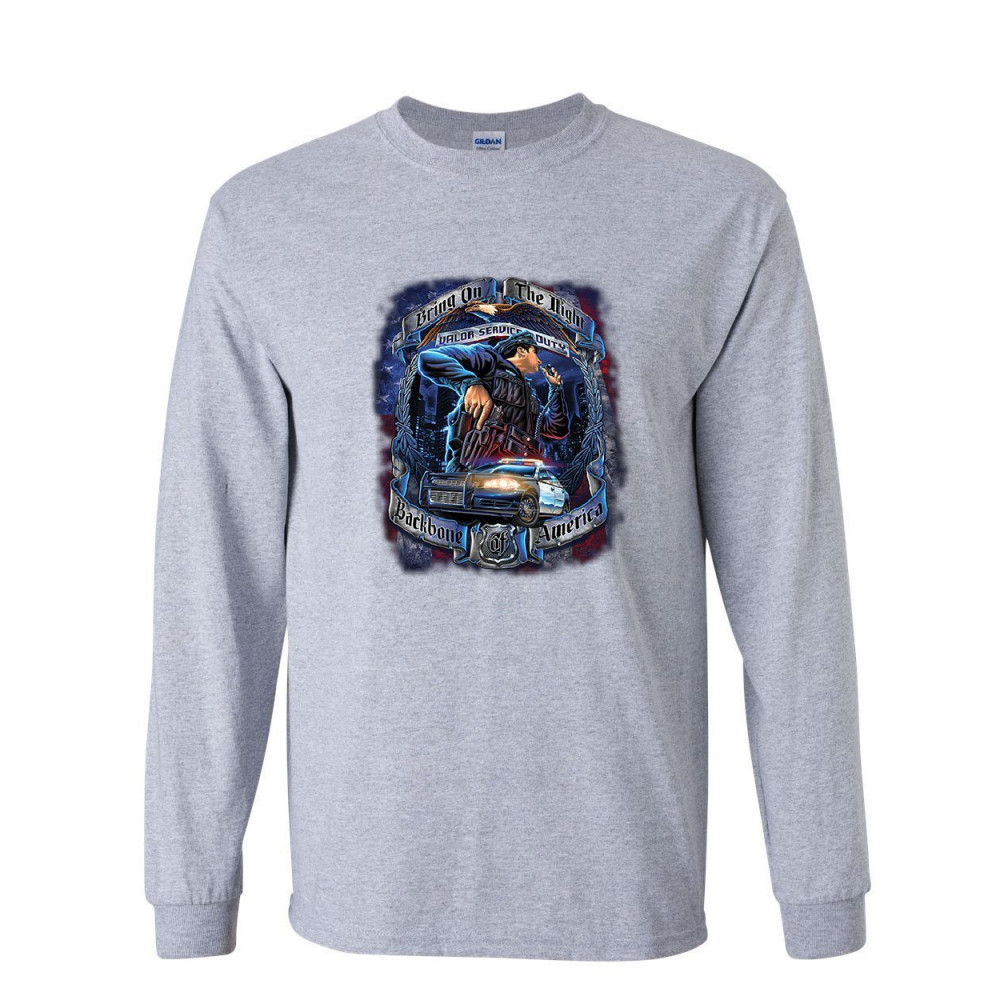 POLICE - BACKBONE OF AMERICA police backbone of america long sleeve t-shirt valor service duty cop patrol tee gray
