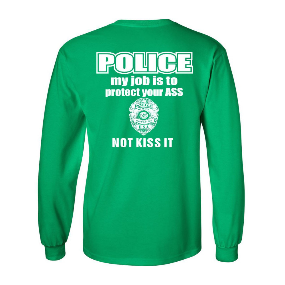POLICE MY JOB IS TO PROTECT YOUR ASS long sleeve t-shirt funny cop green