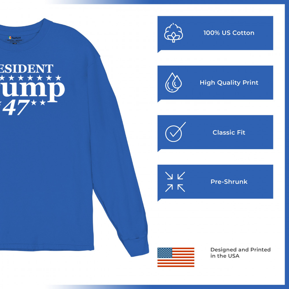 Proudly show support with the "President Trump 47" design, perfect for patriots backing Donald J. Trump as the 47th President and the America First vision.