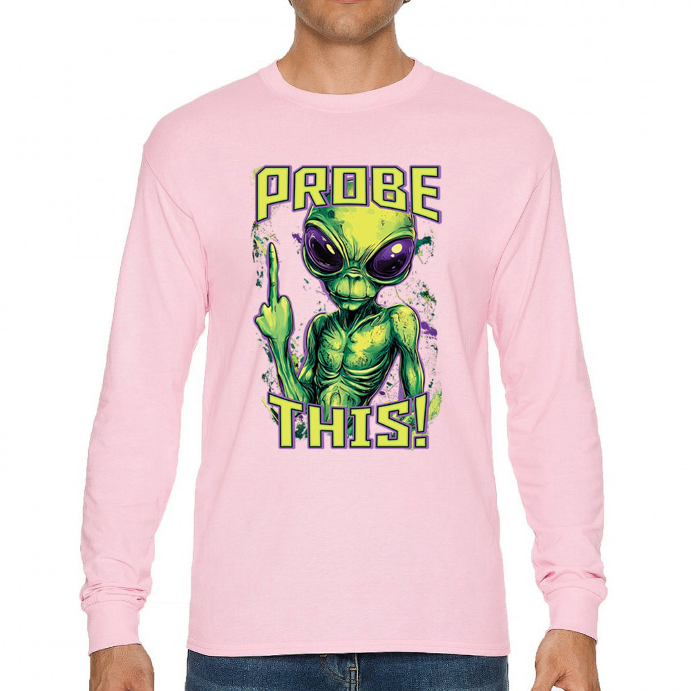 Alien attitude goes full throttle in this rebellious design featuring a defiant extraterrestrial flipping the bird. Bold green and purple tones amplify the sarcasm, making it perfect for UFO fans, protest vibes, and anyone with a dark sense of humor. Wear it loud to alien fests, parties, or anytime you want to stir the stars.