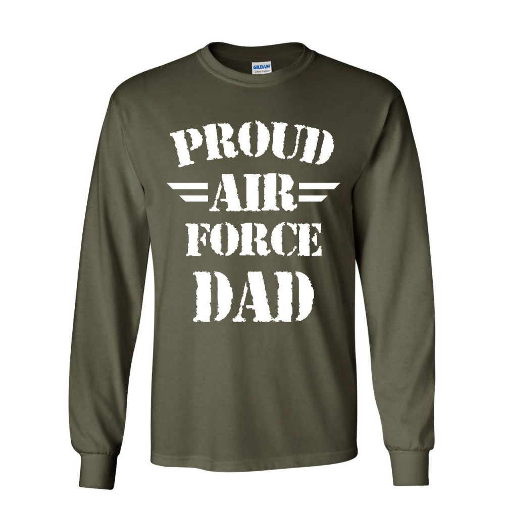 PROUD AIR FORCE DAD long sleeve t-shirt father's day military patriotic tee military green