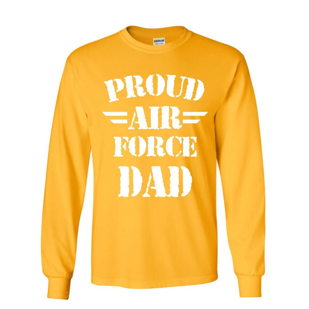 PROUD AIR FORCE DAD long sleeve t-shirt father's day military patriotic tee yellow