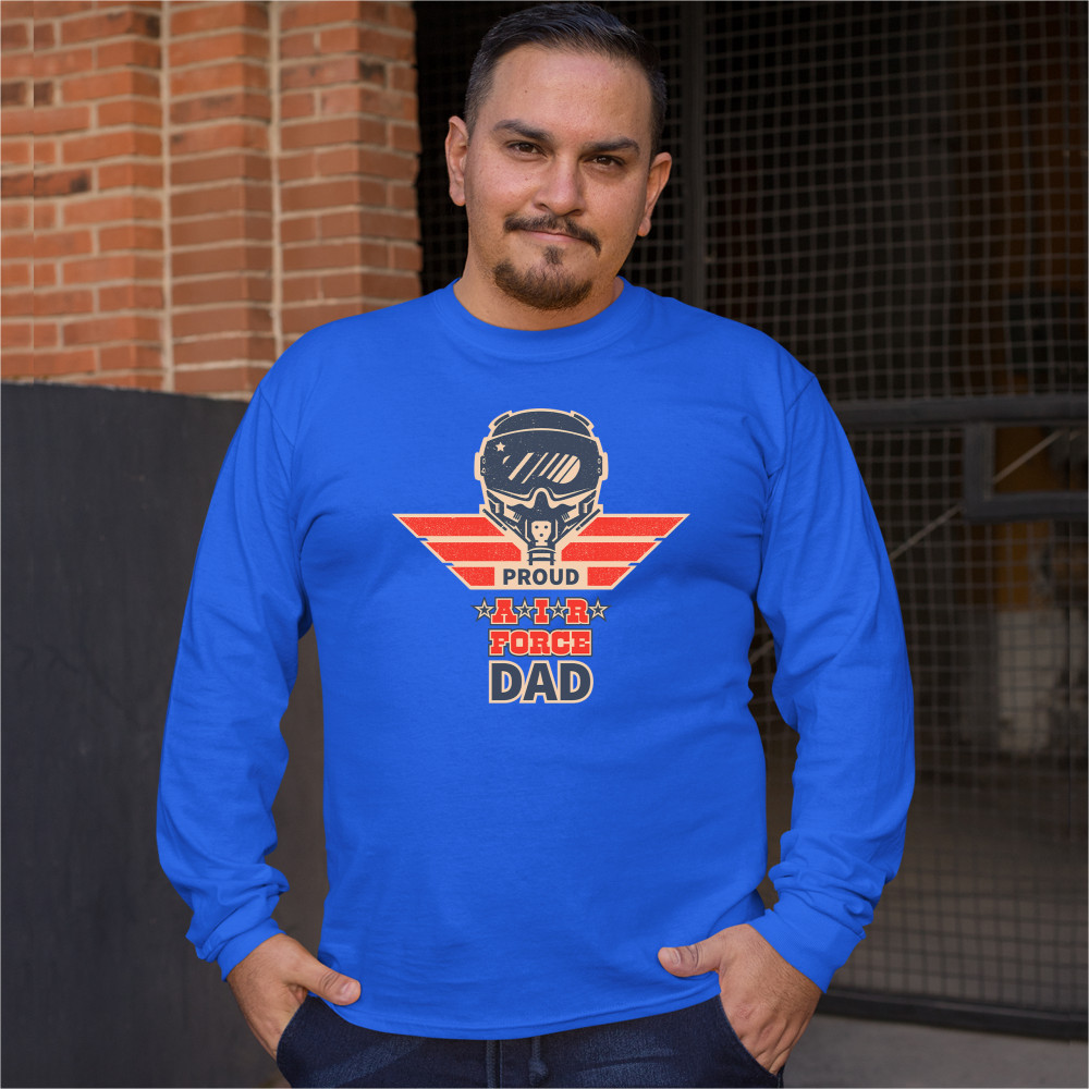PROUD AIR FORCE DAD long sleeve t-shirt military father's day protector rad dad royal blue
