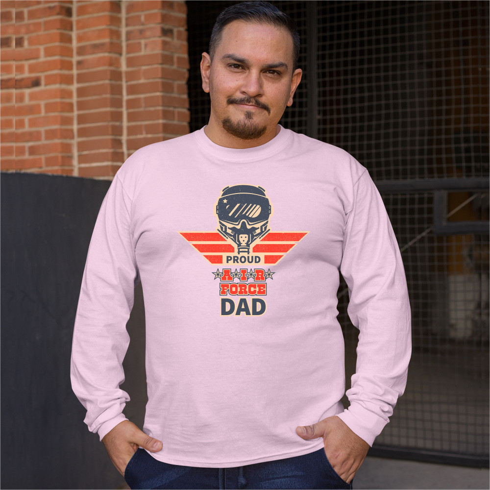 PROUD AIR FORCE DAD long sleeve t-shirt military father's day protector rad dad light pink