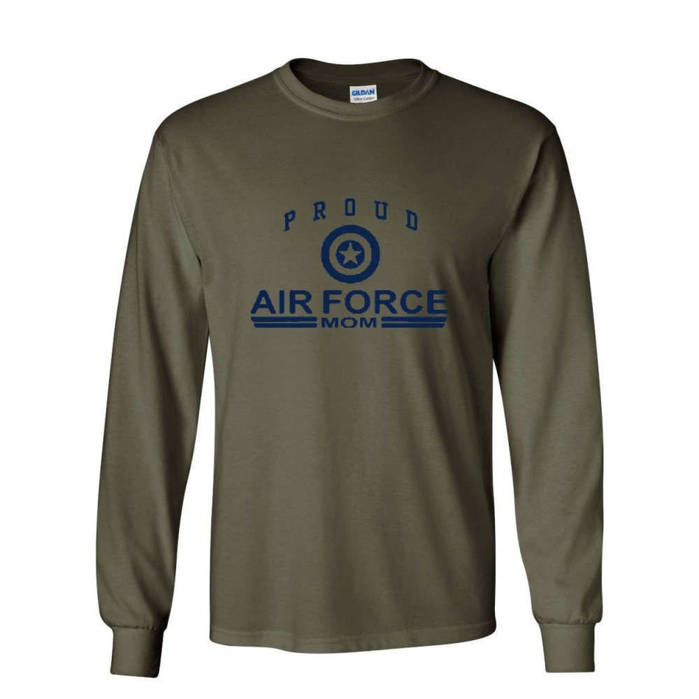 PROUD AIR FORCE MOM NAVY BLUE proud air force mom long sleeve t-shirt us air force usaf military green