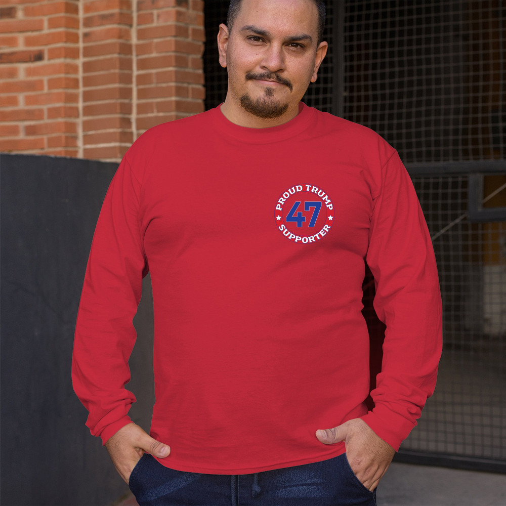 Show your steadfast support for President Trump with our "Trump Supporter 47" design. Emblazoned with patriotic symbols like the American flag and iconic imagery, this design embodies the spirit of the America First movement. Join the Trump Train to victo