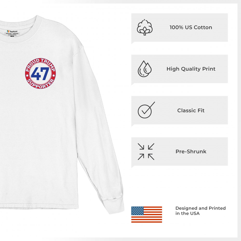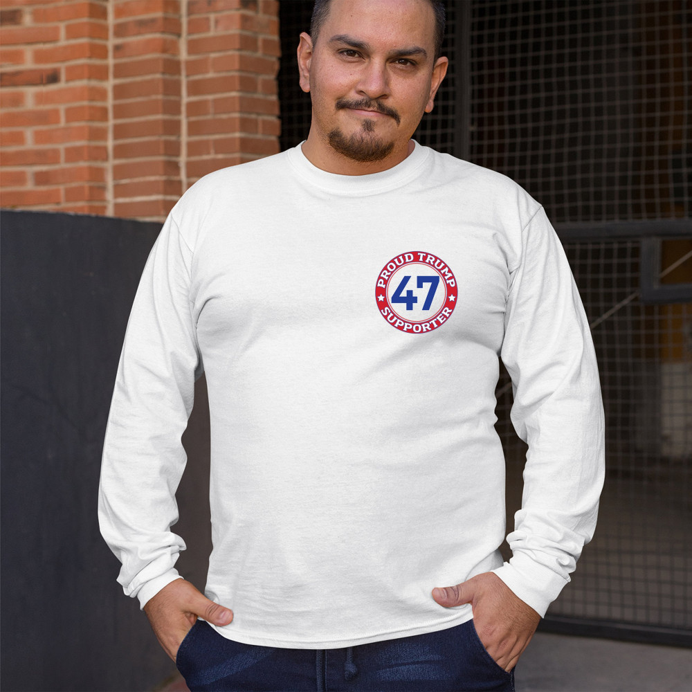 Show your steadfast support for President Trump with our "Trump Supporter 47" design. Emblazoned with patriotic symbols like the American flag and iconic imagery, this design embodies the spirit of the America First movement. Join the Trump Train to victo