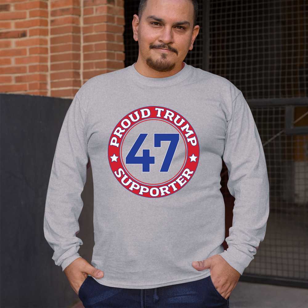 Stand tall as a Proud Trump Supporter 47, echoing the call for America First principles and conservative values. Embrace the Trump Train to victory and showcase your unwavering commitment to the Republican cause. Trust in God, not government, as you stand