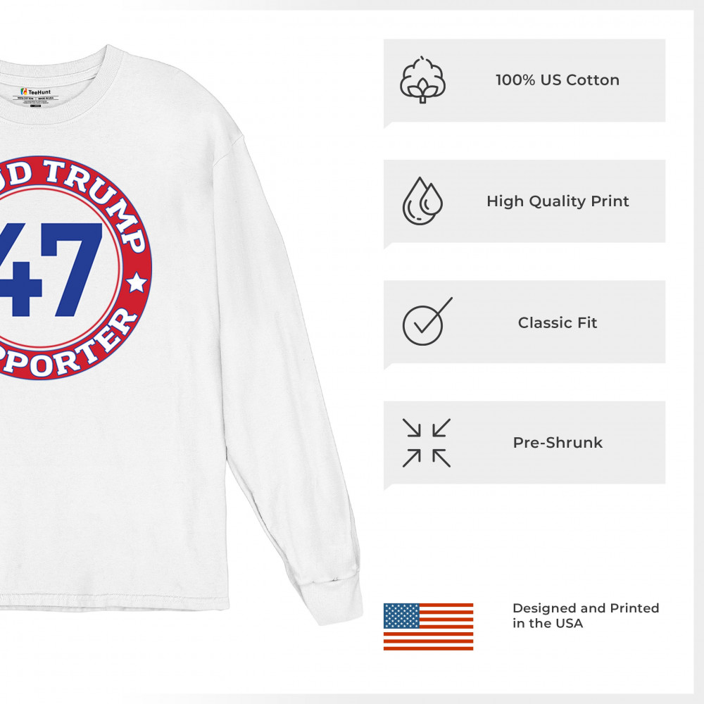 Stand tall as a Proud Trump Supporter 47, echoing the call for America First principles and conservative values. Embrace the Trump Train to victory and showcase your unwavering commitment to the Republican cause. Trust in God, not government, as you stand