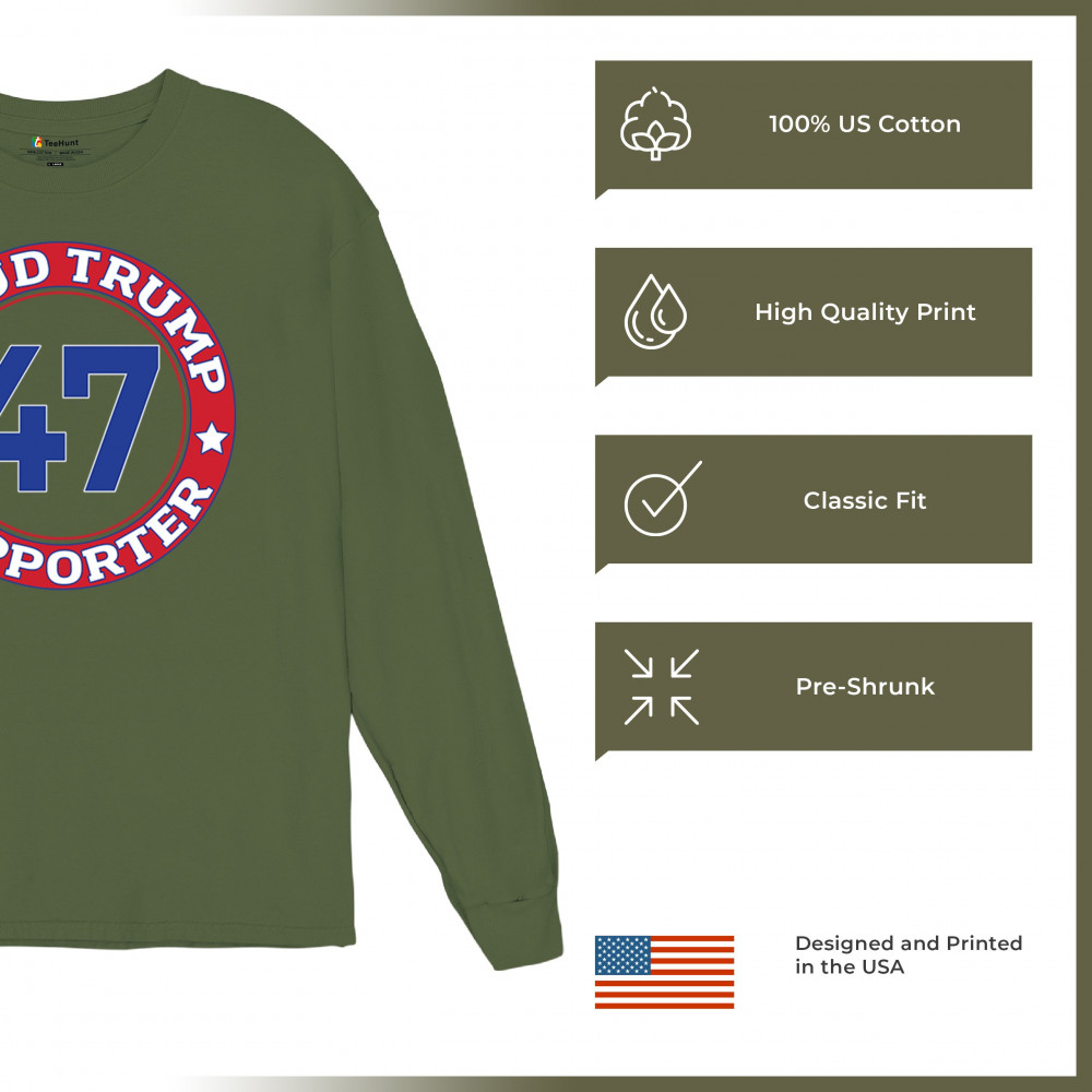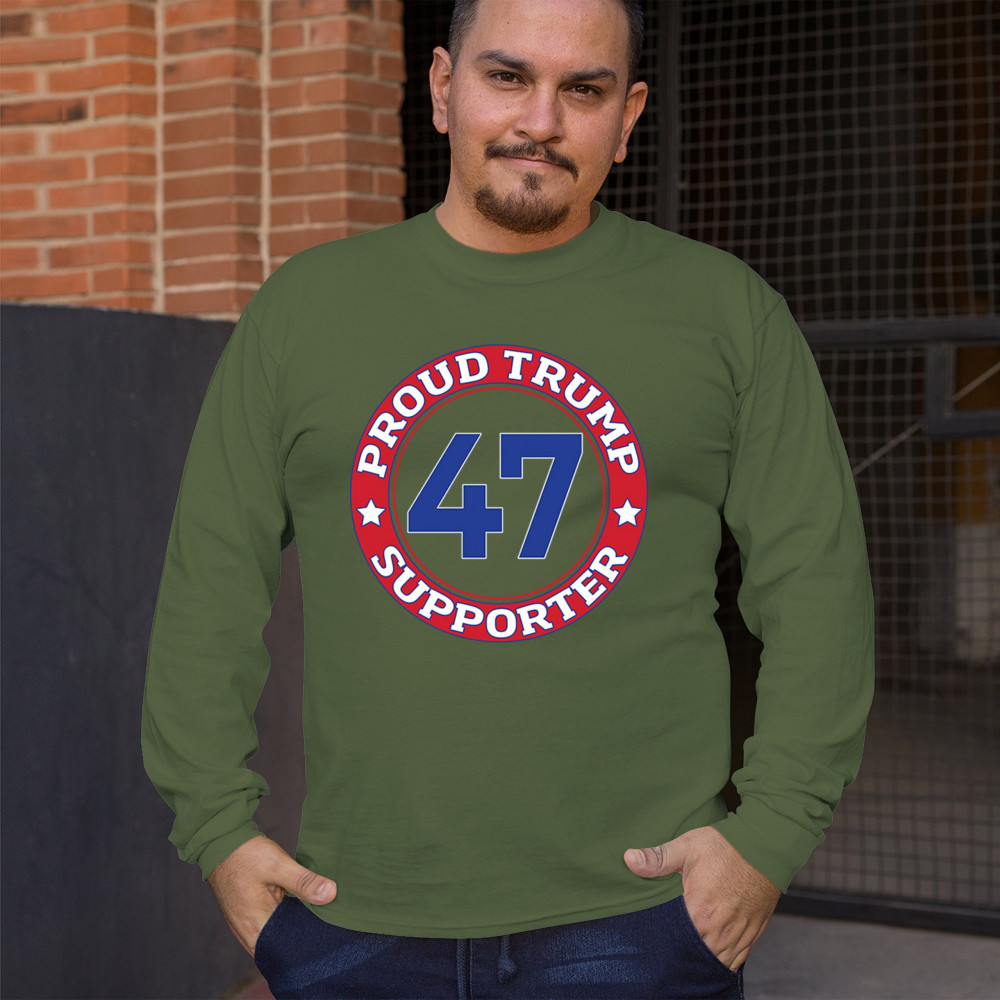 Stand tall as a Proud Trump Supporter 47, echoing the call for America First principles and conservative values. Embrace the Trump Train to victory and showcase your unwavering commitment to the Republican cause. Trust in God, not government, as you stand