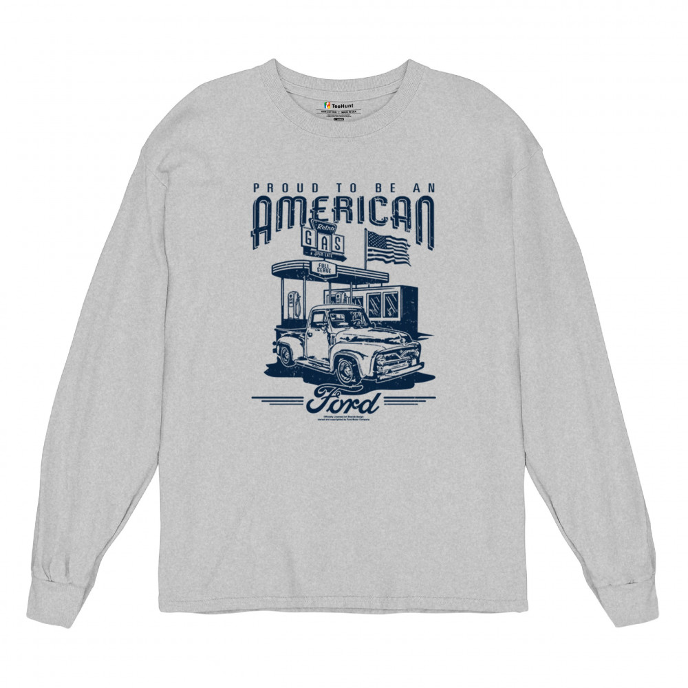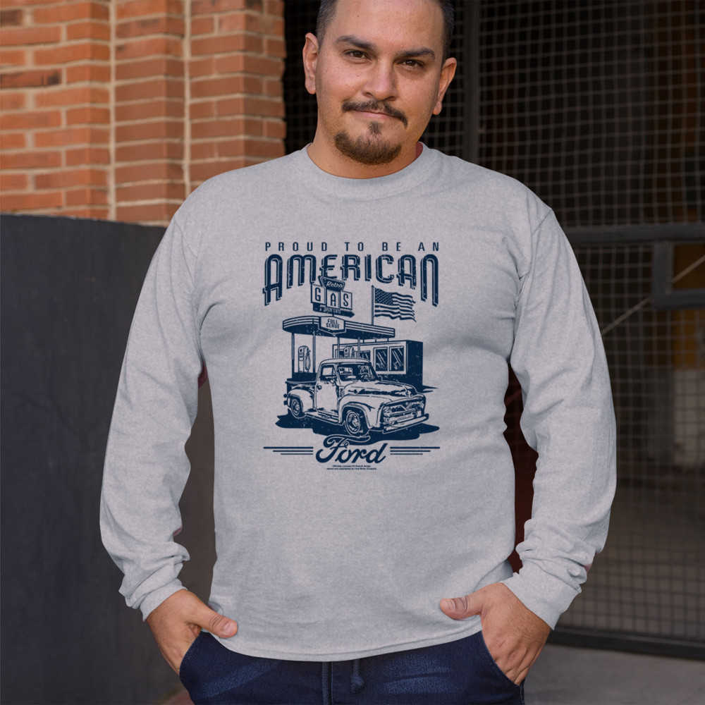 Celebrate Ford's legacy with this vintage 1950s F-Series truck design featuring an American flag. A perfect gift for Ford and classic car enthusiasts.