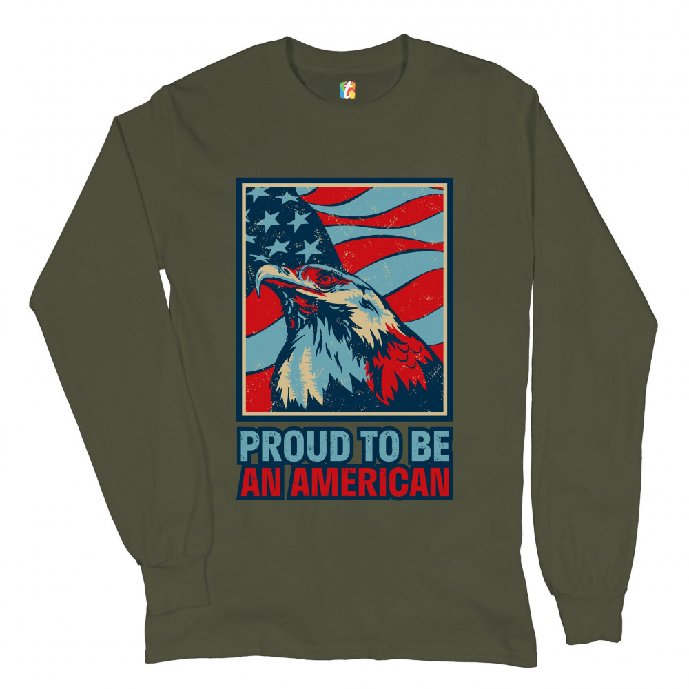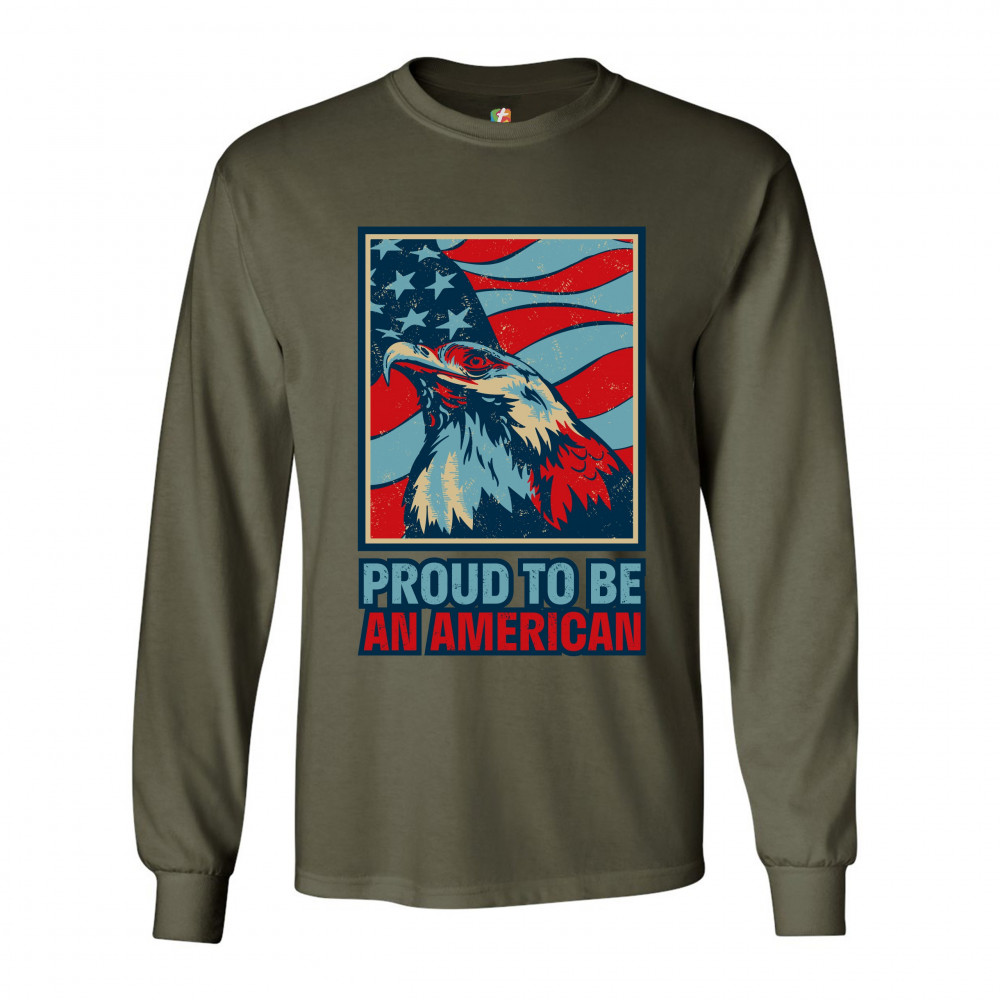 PROUD TO BE AN AMERICAN long sleeve t-shirt 4th of july bald eagle patriotic military green