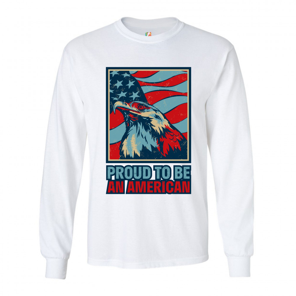 PROUD TO BE AN AMERICAN long sleeve t-shirt 4th of july bald eagle patriotic white