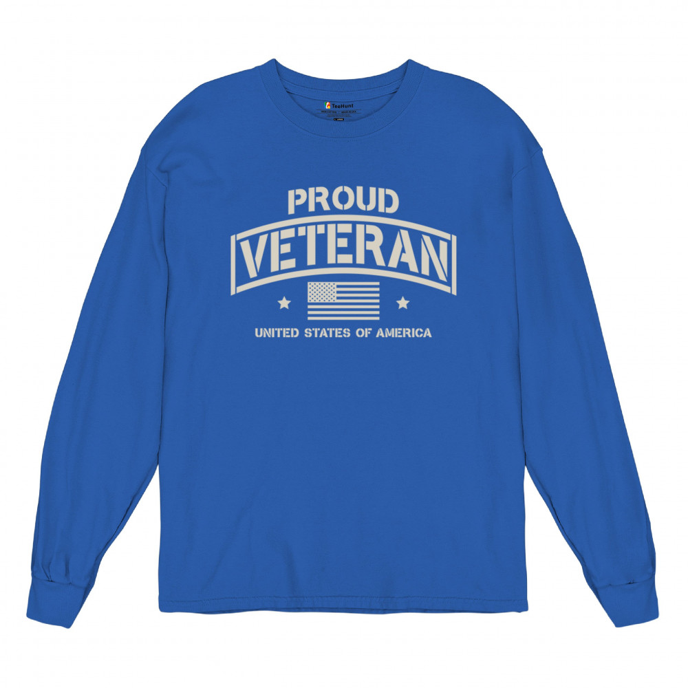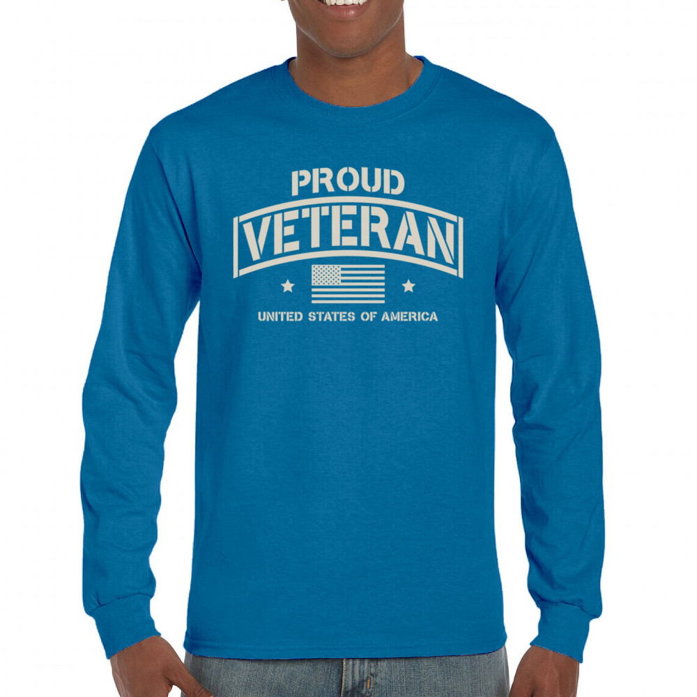 "Proud Veteran" shirt featuring bold design and American flag. Perfect for Memorial Day, Veterans Day, and everyday patriotism. High-quality and comfortable.