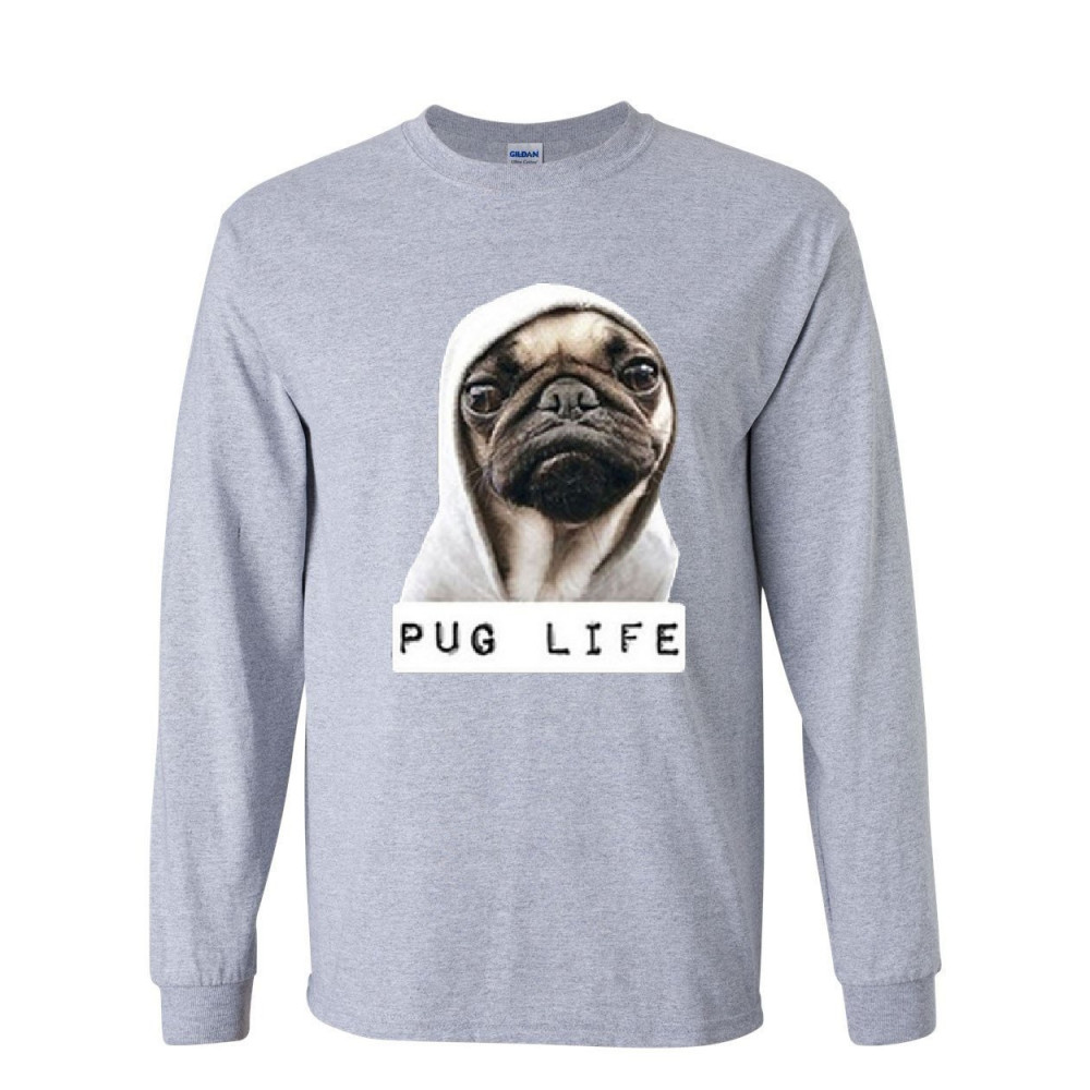 PUG LIFE FUNNY long sleeve t-shirt dope thug life dog parody hipster gray