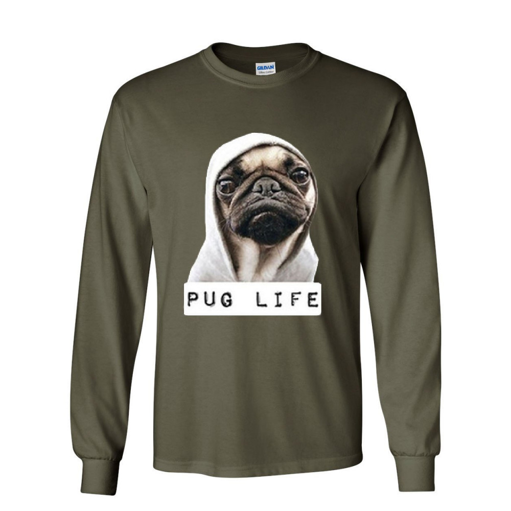PUG LIFE FUNNY long sleeve t-shirt dope thug life dog parody hipster military green