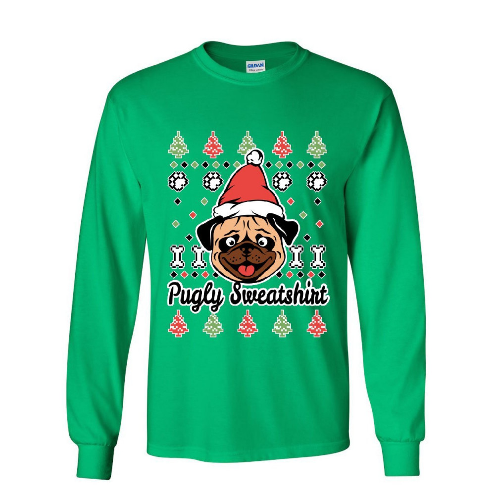 PUGLY SWEATSHIRT long sleeve t-shirt pug ugly sweater jolly christmas xmas tee green