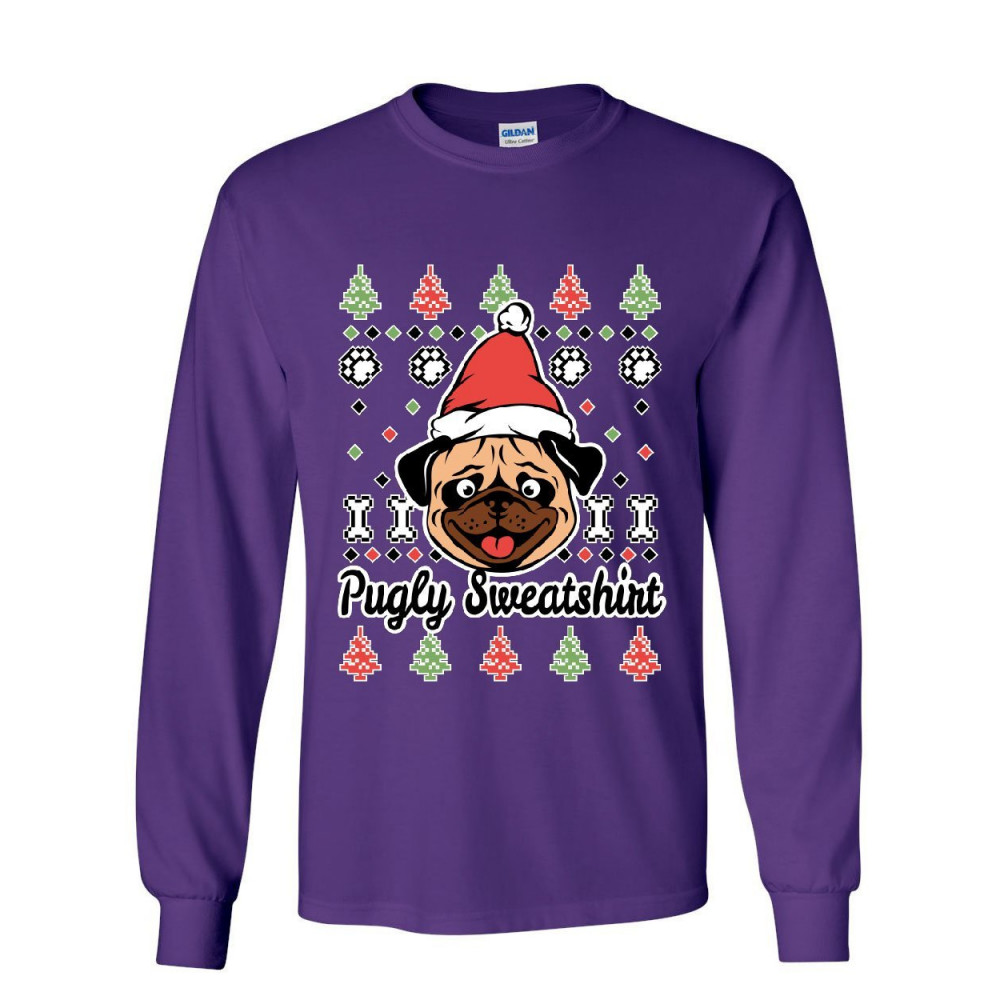 PUGLY SWEATSHIRT long sleeve t-shirt pug ugly sweater jolly christmas xmas tee purple