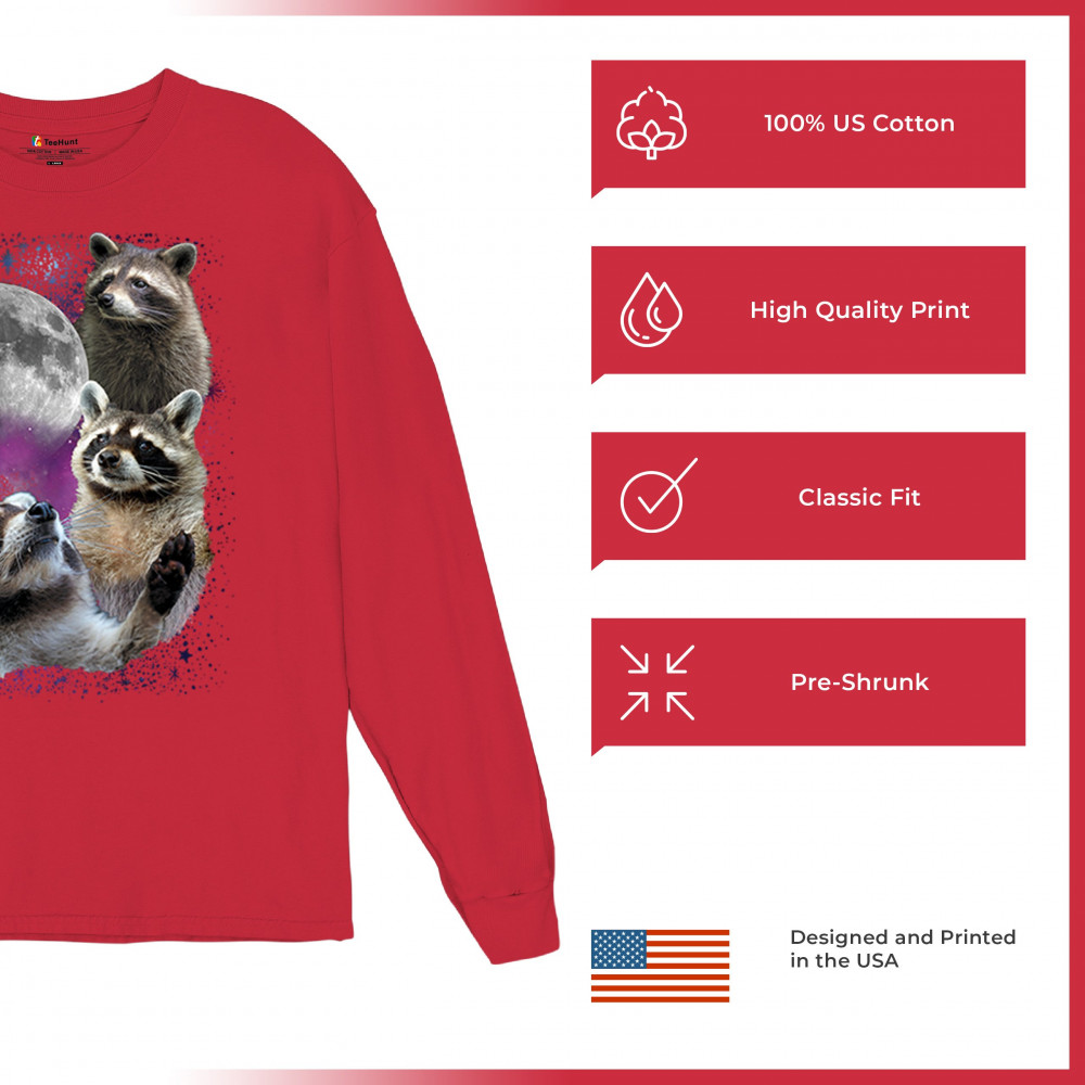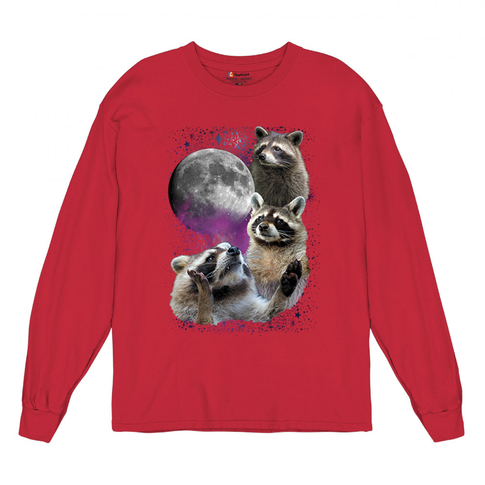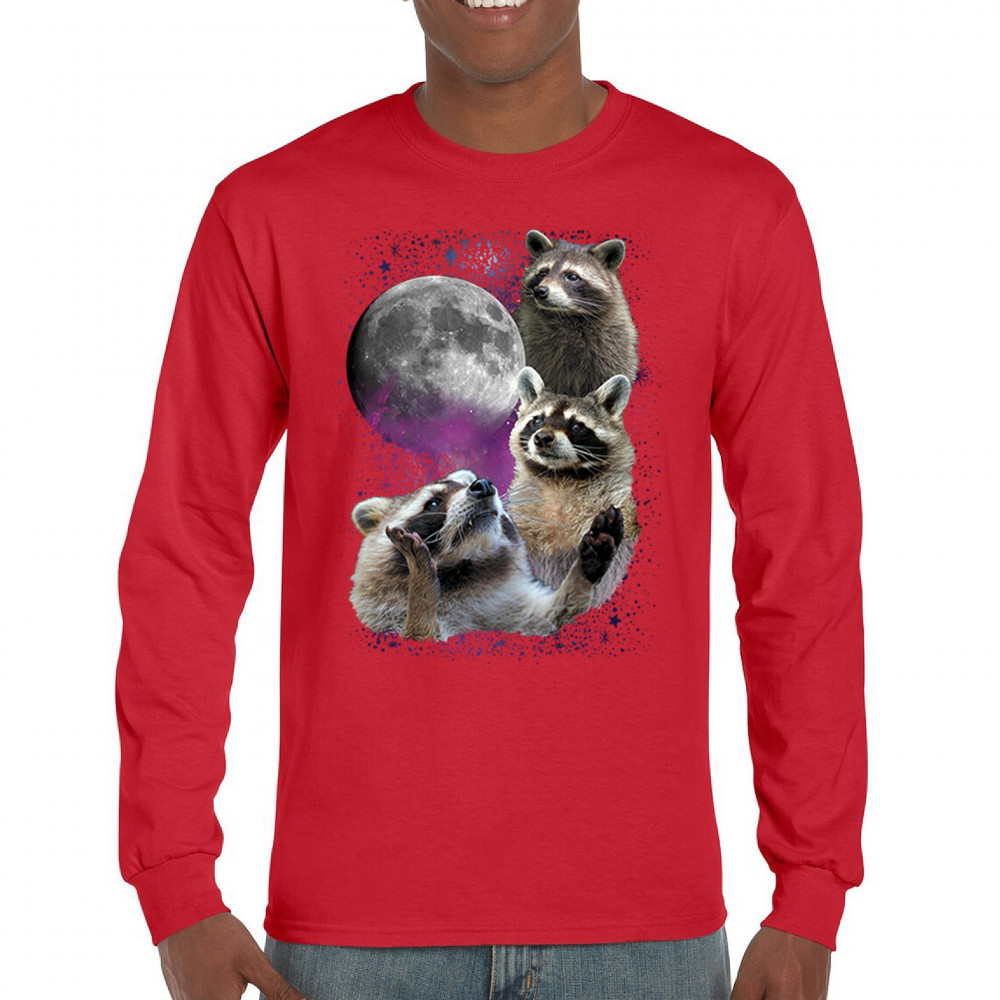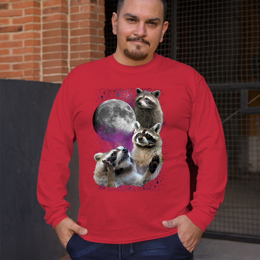 Embrace nature with this quirky raccoon and moon design, perfect for space and animal lovers. Ideal for casual wear or gifts.