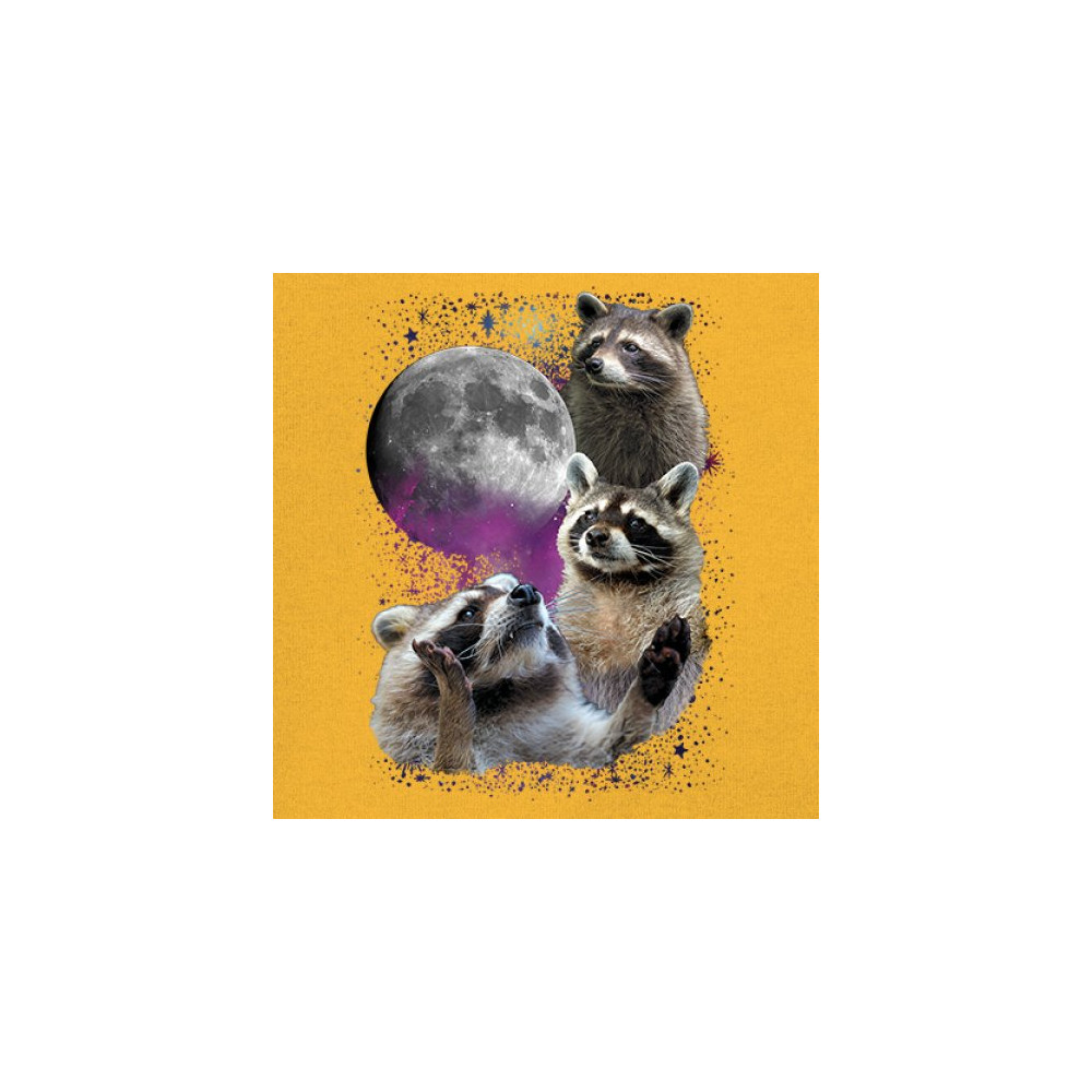 Step into the wild with this delightful and quirky raccoon and moon design. This captivating graphic features three raccoons against a backdrop of a starry night sky and a full moon, evoking the mysterious beauty of the wilderness. Perfect for nature lovers and those who appreciate nocturnal creatures with a silly twist, this design is a versatile addition to any casual wardrobe. It's ideal for outdoor adventures, relaxed outings, or themed events, and makes a thoughtful gift for anyone who loves the night and its charming wildlife.